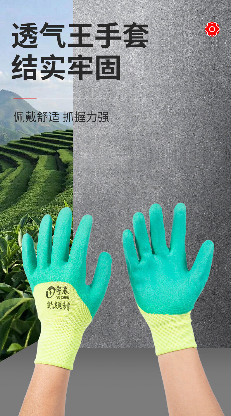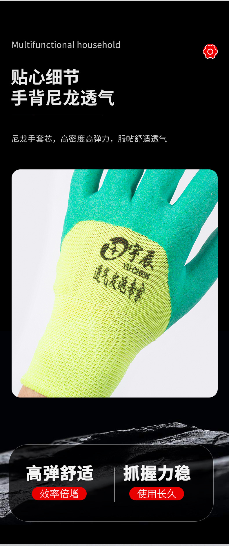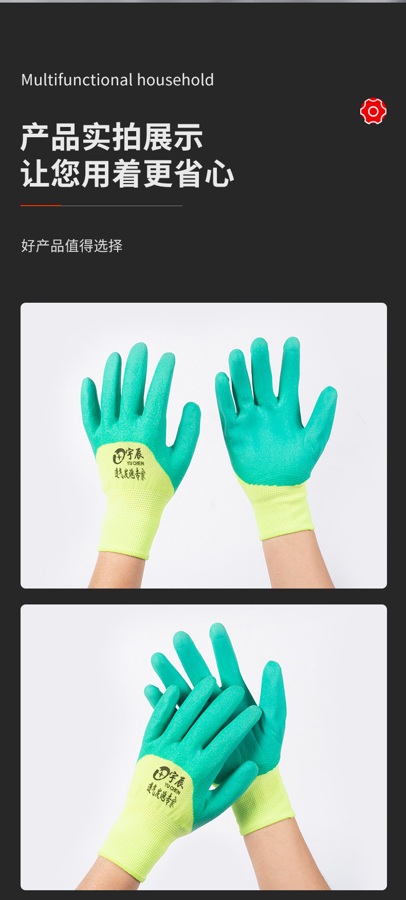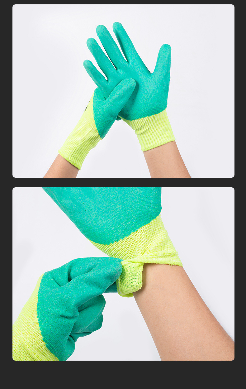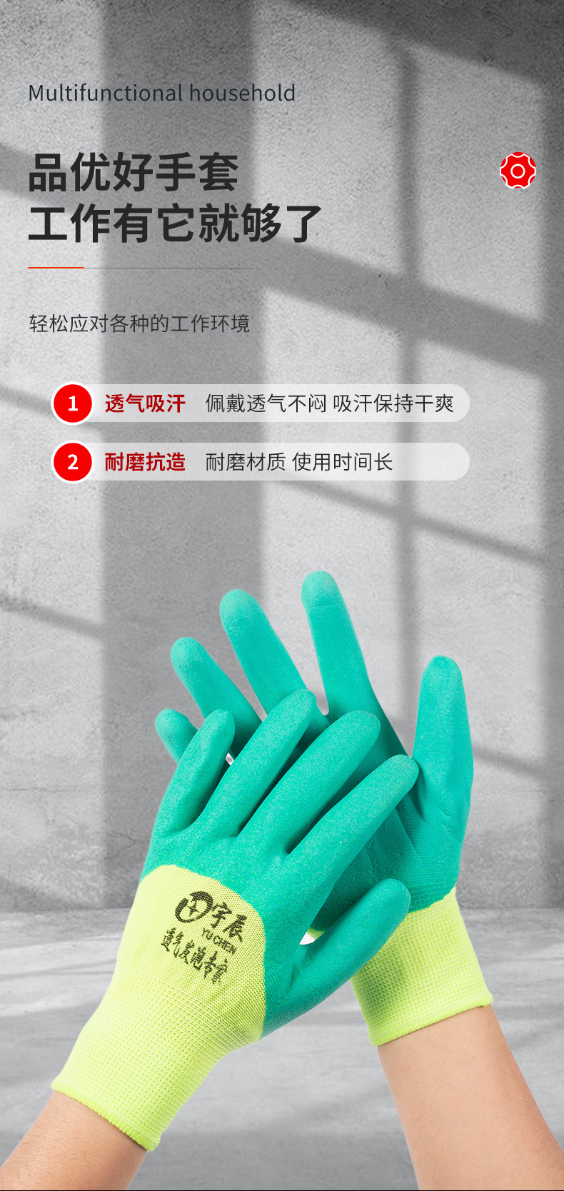 통기성 킹 나일론 담그기 접착제 주름 포밍 장갑 방수 미끄럼 방지 접착제 코팅 노동 장갑스토어 가기