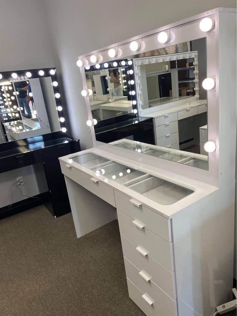 아마존 대형 미러 멀티 서랍 스토리지 드레싱 테이블 인터넷 연예인 Ins 현대 간단한 LED 드레싱 테이블