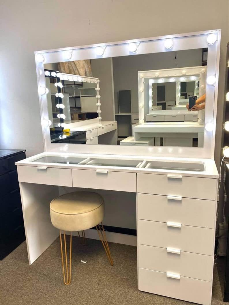 아마존 대형 미러 멀티 서랍 스토리지 드레싱 테이블 인터넷 연예인 Ins 현대 간단한 LED 드레싱 테이블스토어 가기