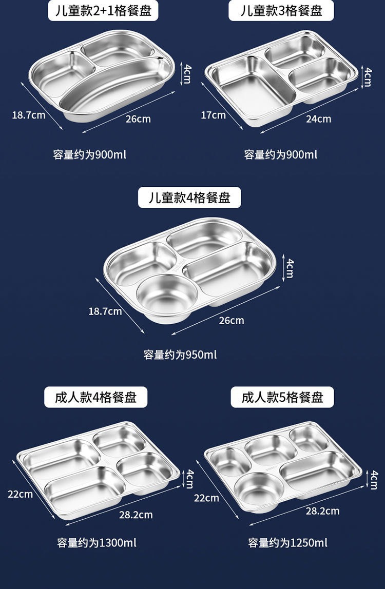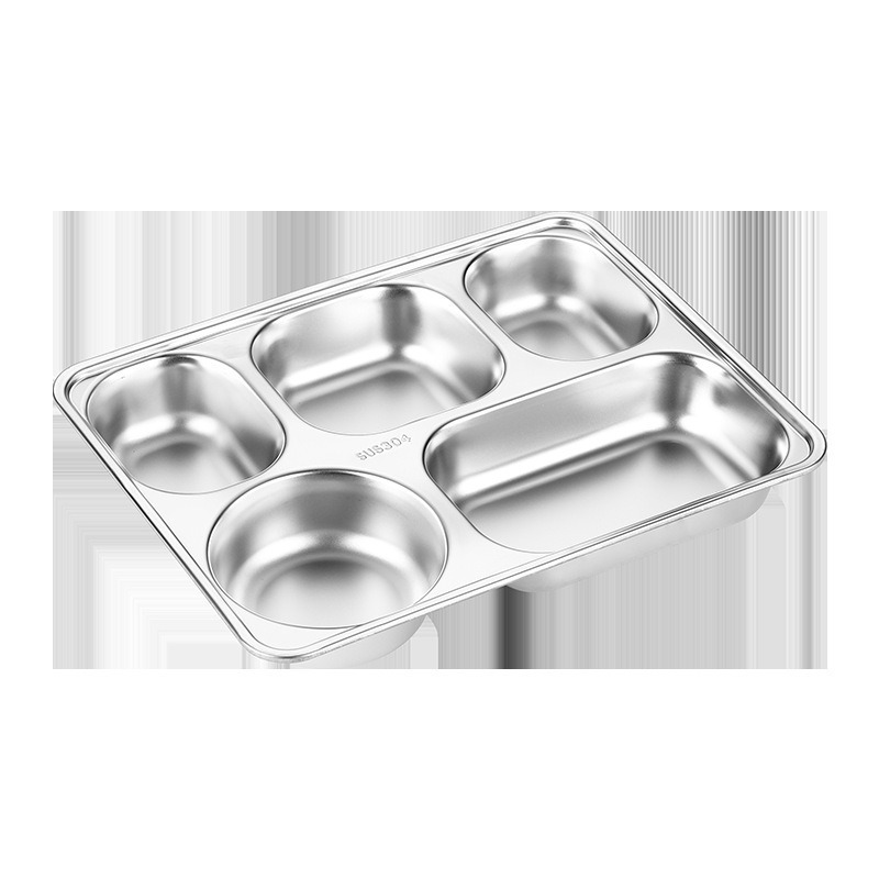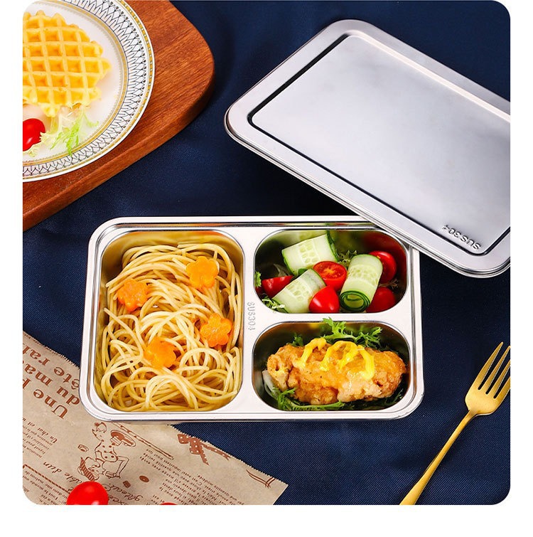 304 스테인레스 스틸 분리 된 패스트 푸드 플레이트 매점 어린이 및 학생 사각 플레이트와 뚜껑 파티션으로 두껍게 된 디너 박스 디너 플레이트