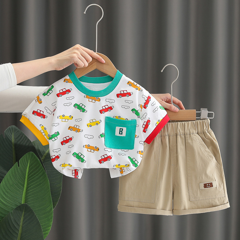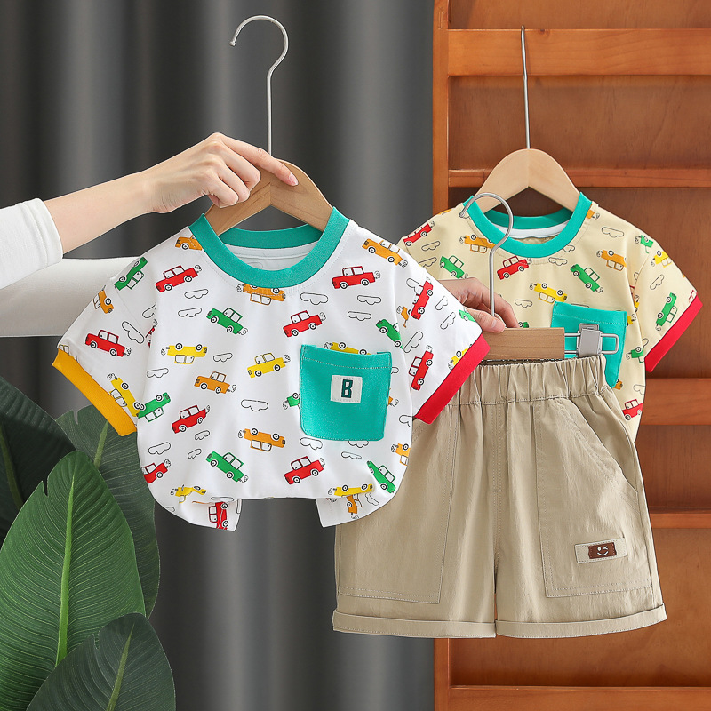 소년 여름 반팔 세트 2025 새로운 어린이 캐주얼 서양식 남성 아기 여름 얇은 티셔츠 투피스 세트스토어 가기