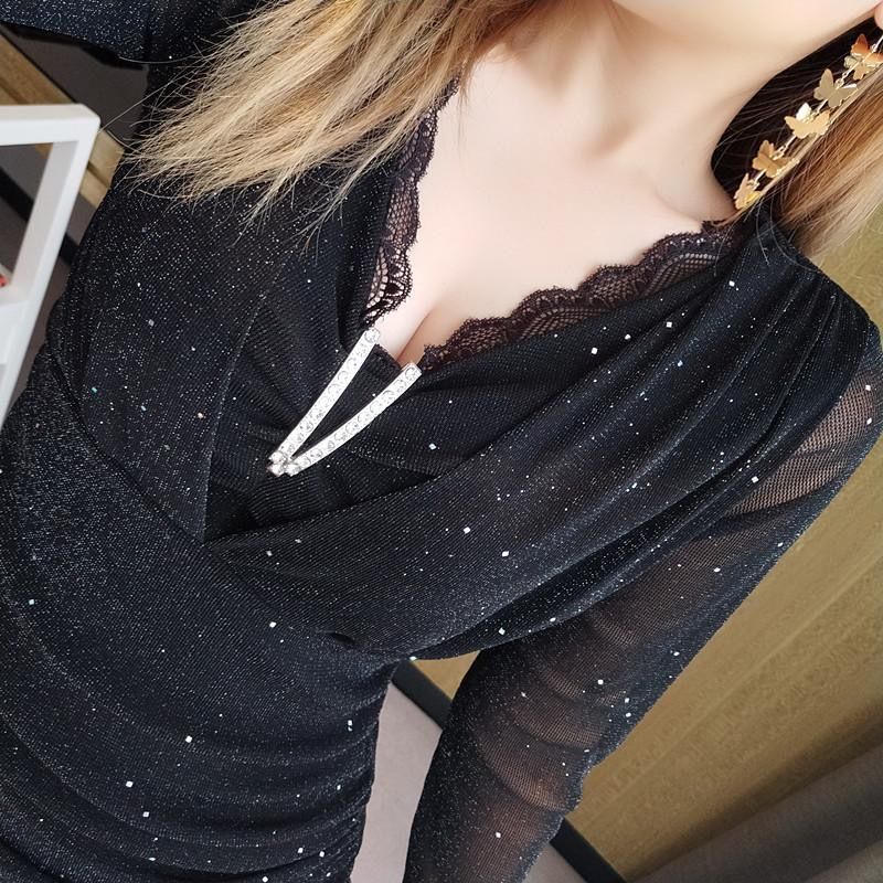 가을과 겨울 2024 새로운 우아한 타이트 레이스 긴 소매 스트레치 웨스턴 스타일 칼라 슬리밍 주름 블랙 원피스스토어 가기