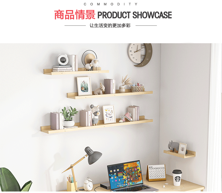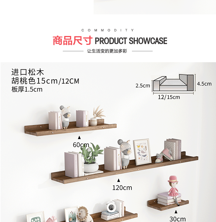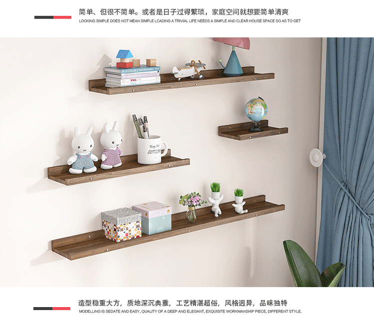 단단한 나무 벽 저장 랙 벽걸이 형 라미네이트 뒷벽 장식 브래킷 한 단어 파티션 책장 선반 상품 선반