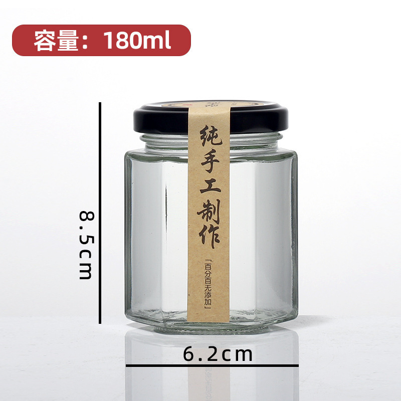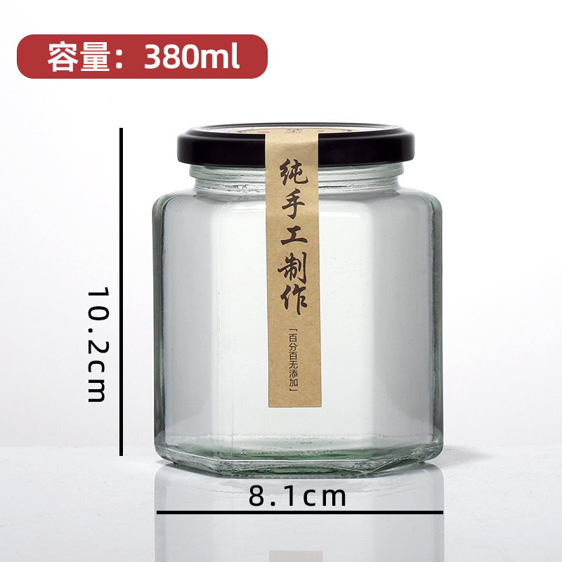 6 면 유리 병 식품 등급 봉인 된 항아리 레몬 페이스트 킬로 허니 병 칠리 소스 잼 쇠고기 소스