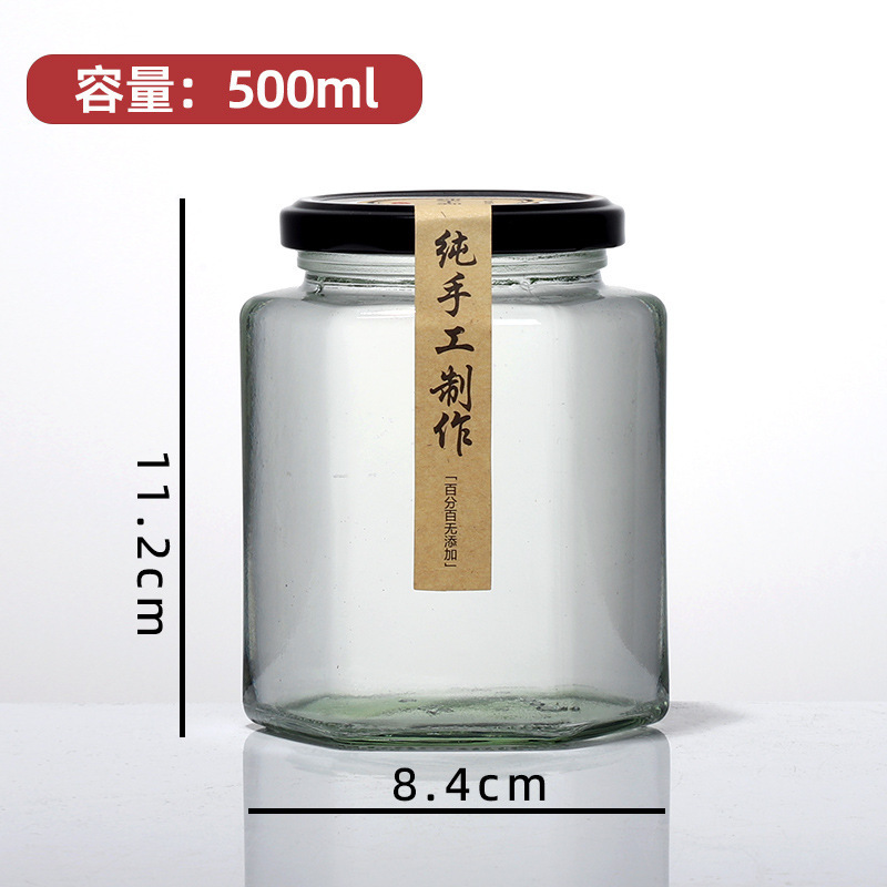 6 면 유리 병 식품 등급 봉인 된 항아리 레몬 페이스트 킬로 허니 병 칠리 소스 잼 쇠고기 소스스토어 가기