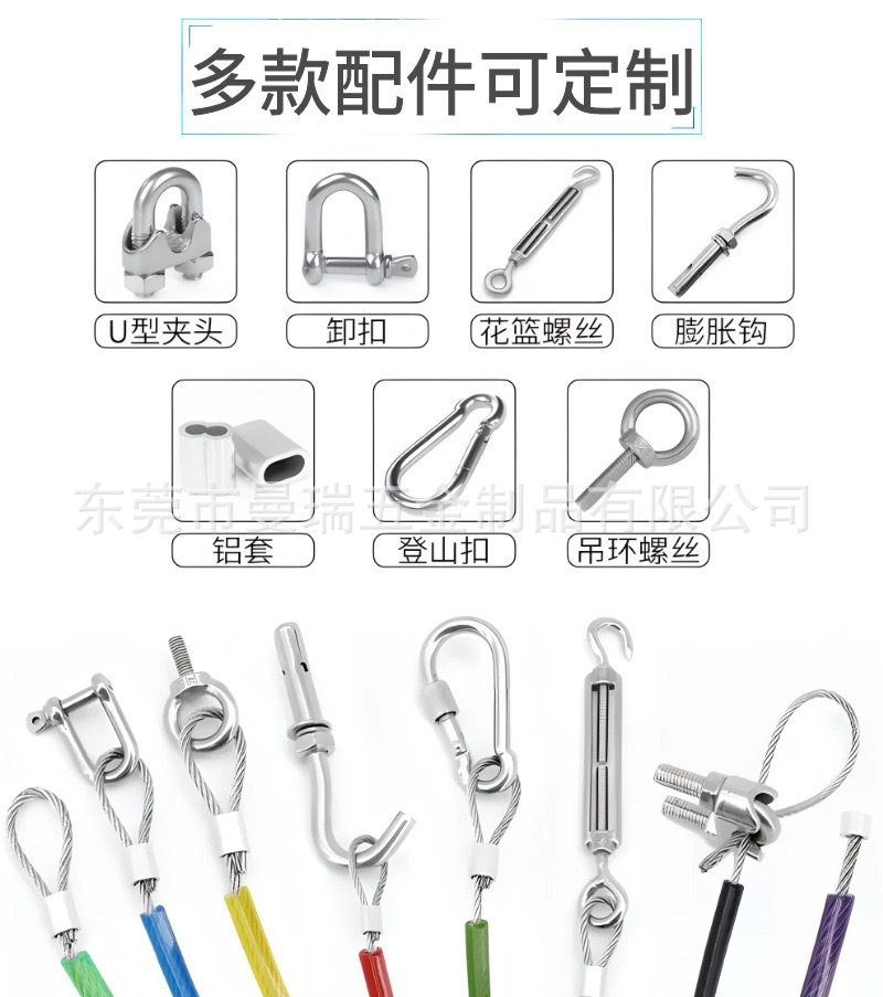 스테인레스 스틸 코팅 다이 캐스트 스틸 와이어 로프 알루미늄 슬리브 프레스 스틸 와이어 로프 리깅 스테이지 라이트 안전 교수형 로프 케이블