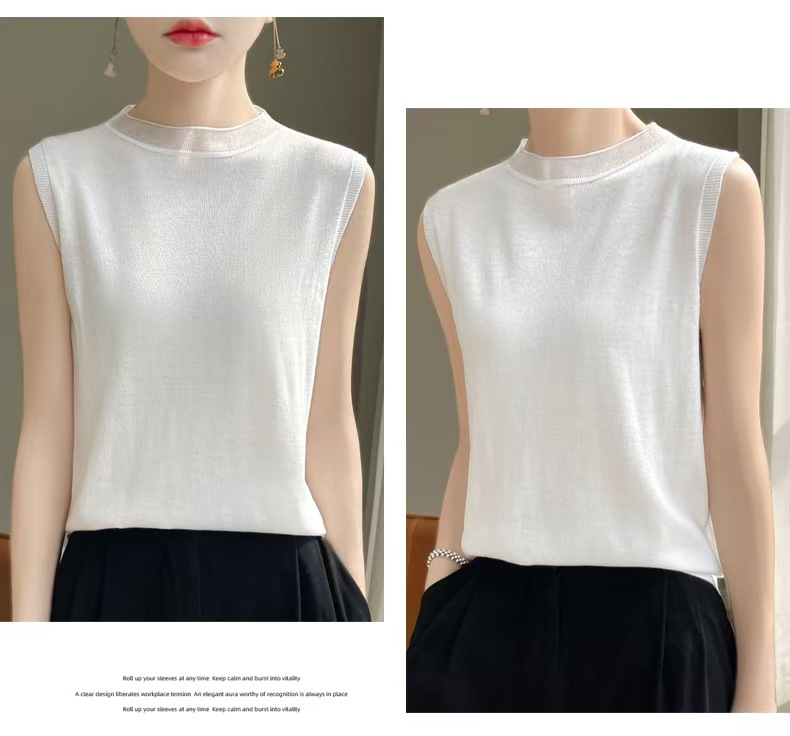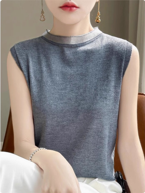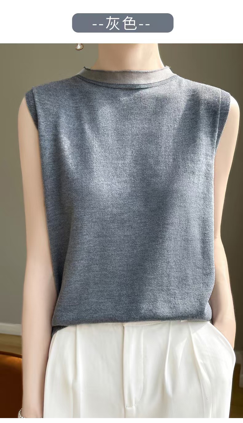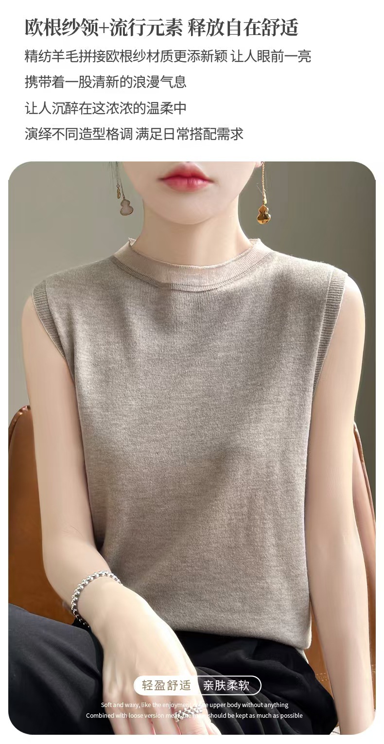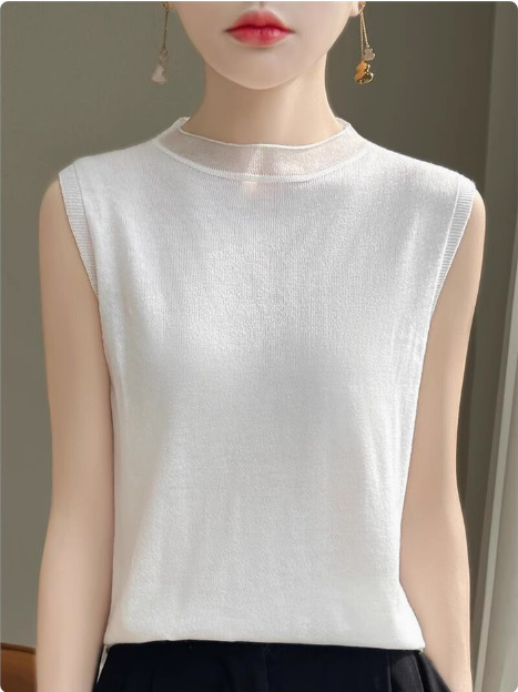 오간자 바느질 민소매 조끼 여성용 티셔츠 느슨한 울 니트 셔츠 짧은 소매 내베이스 셔츠 탑스토어 가기