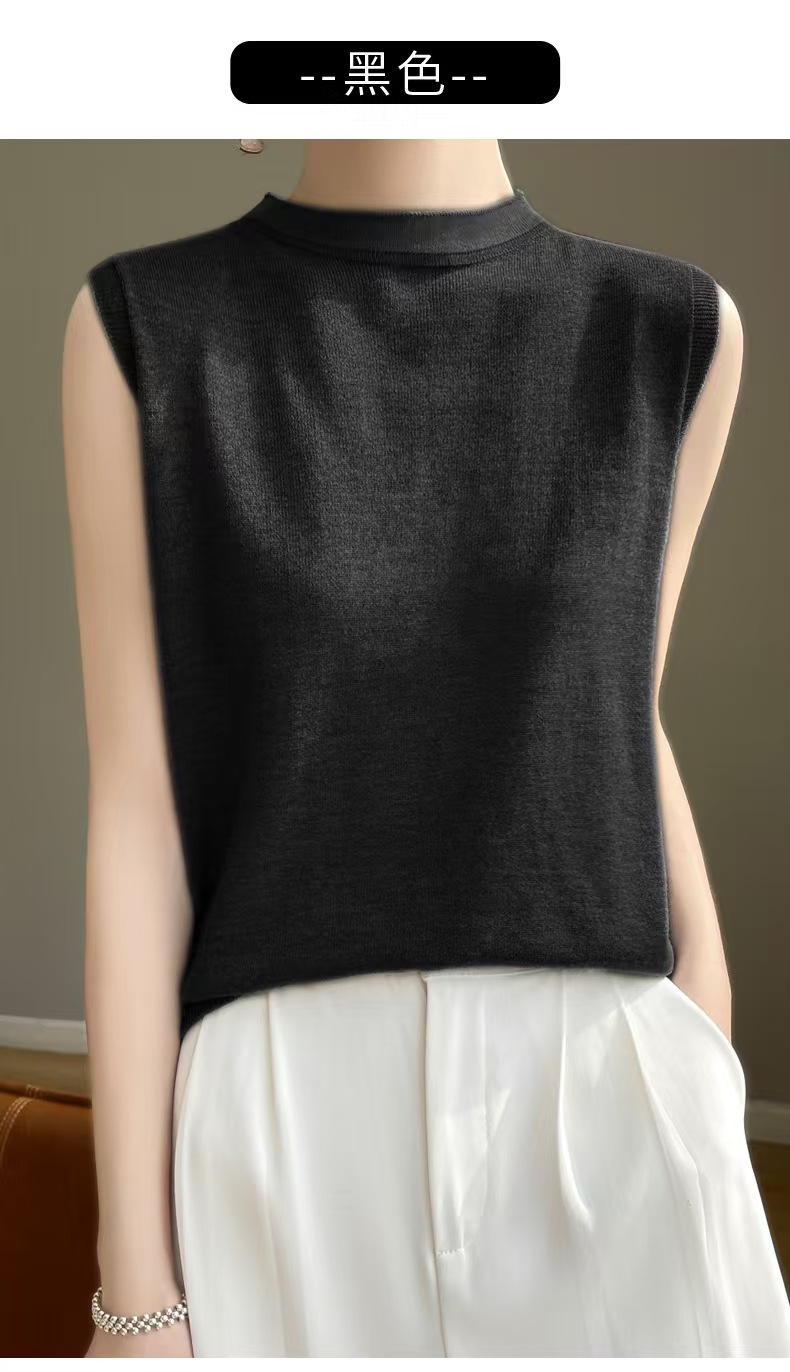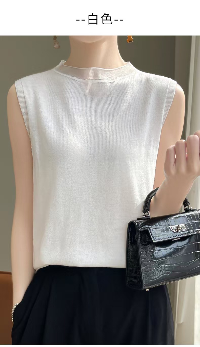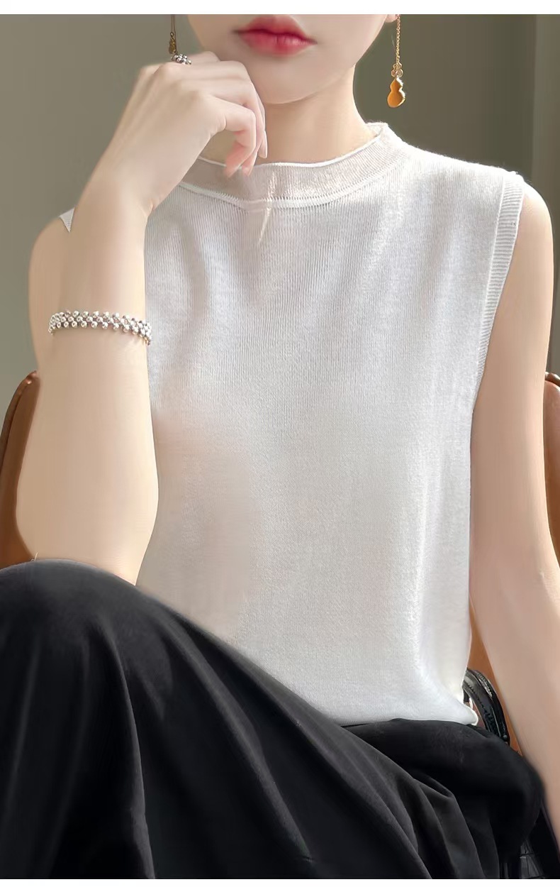 오간자 바느질 민소매 조끼 여성용 티셔츠 느슨한 울 니트 셔츠 짧은 소매 내베이스 셔츠 탑스토어 가기