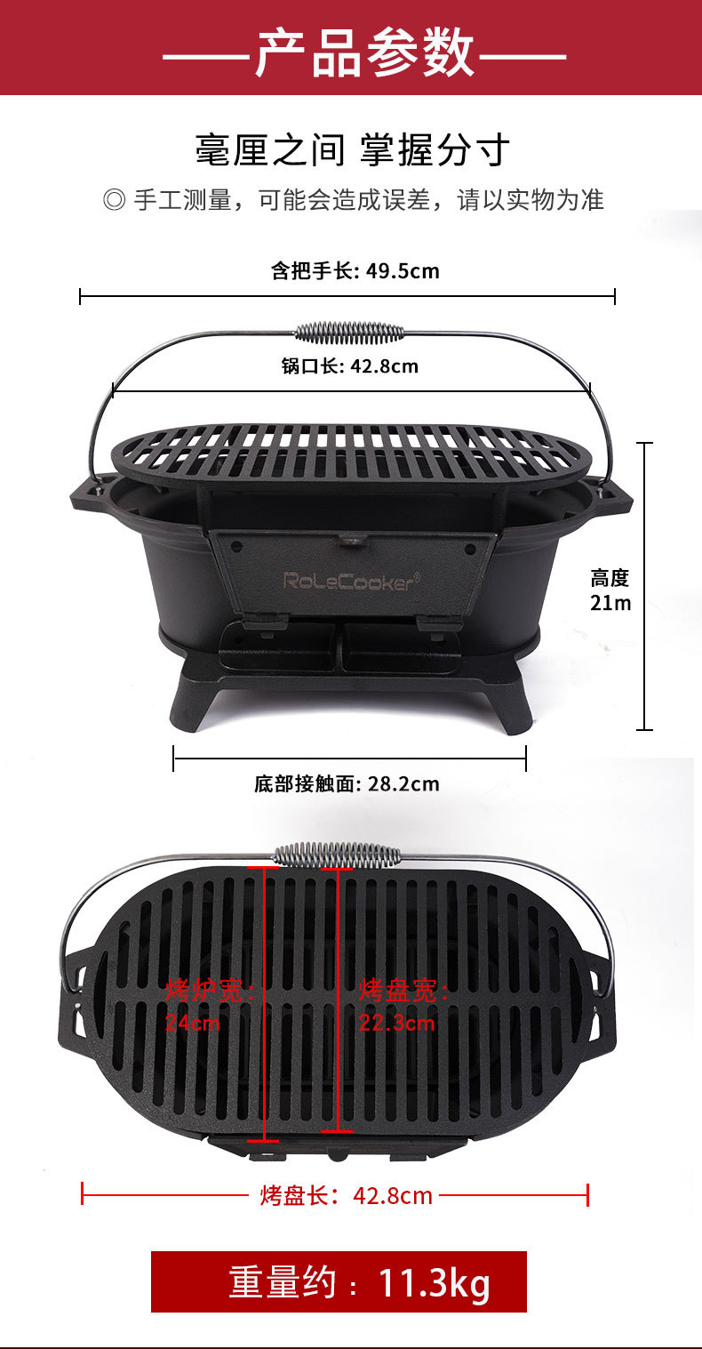 ♤ 미국식 주철 야외 바베큐 그릴, 가정용 숯불 바베큐 그릴, 대형 두꺼운 캠핑/야외 요리용, 정원/빌라용