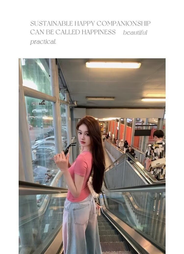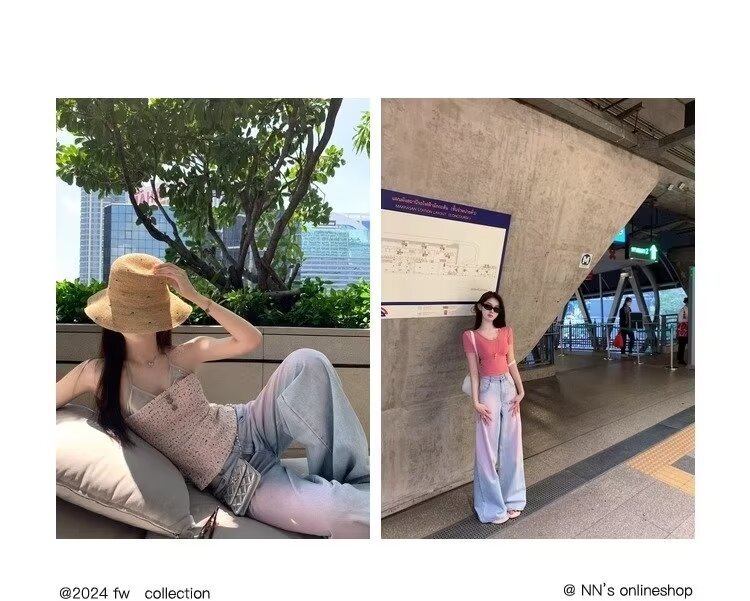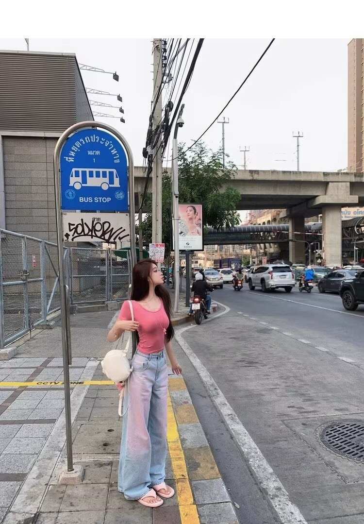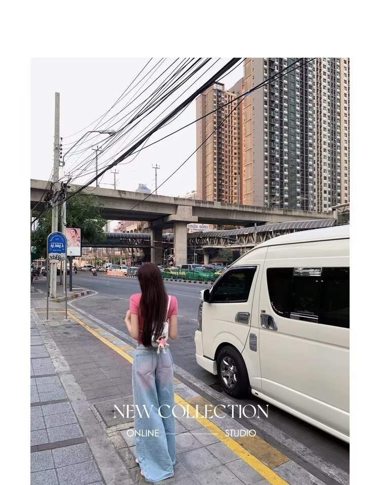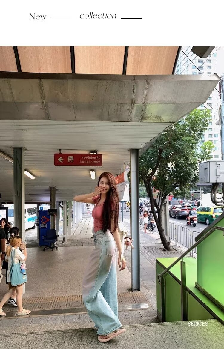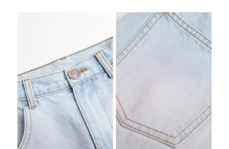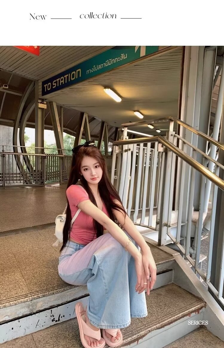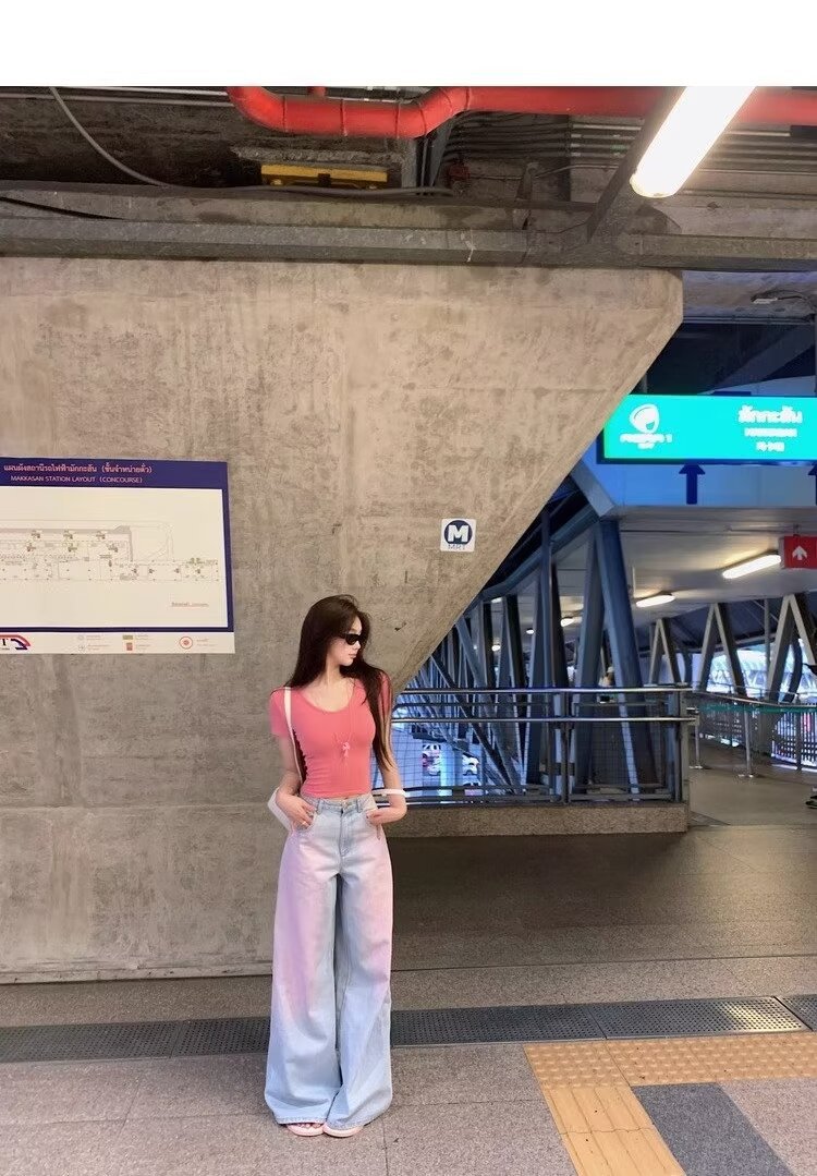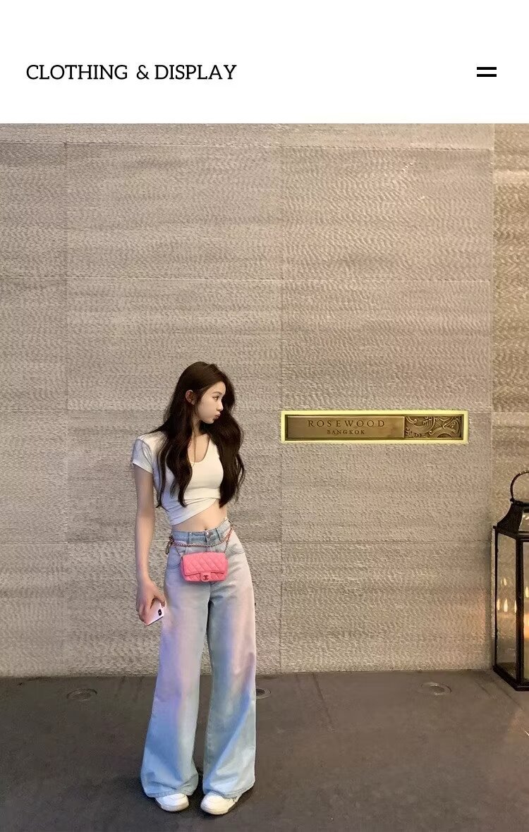 아메리칸 스타일 빈티지 오래 된 스프레이 그린 블러쉬 핑크 청바지 여성용 트렌디 브랜드 와이드 레그 루즈 캐주얼 팬츠스토어 가기