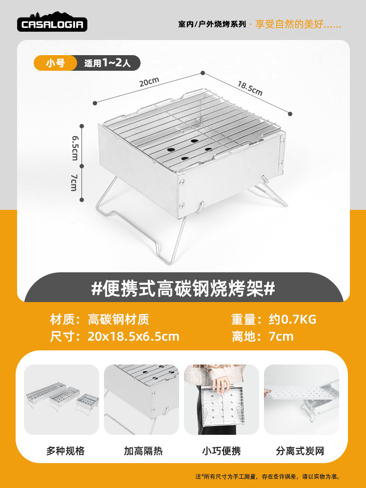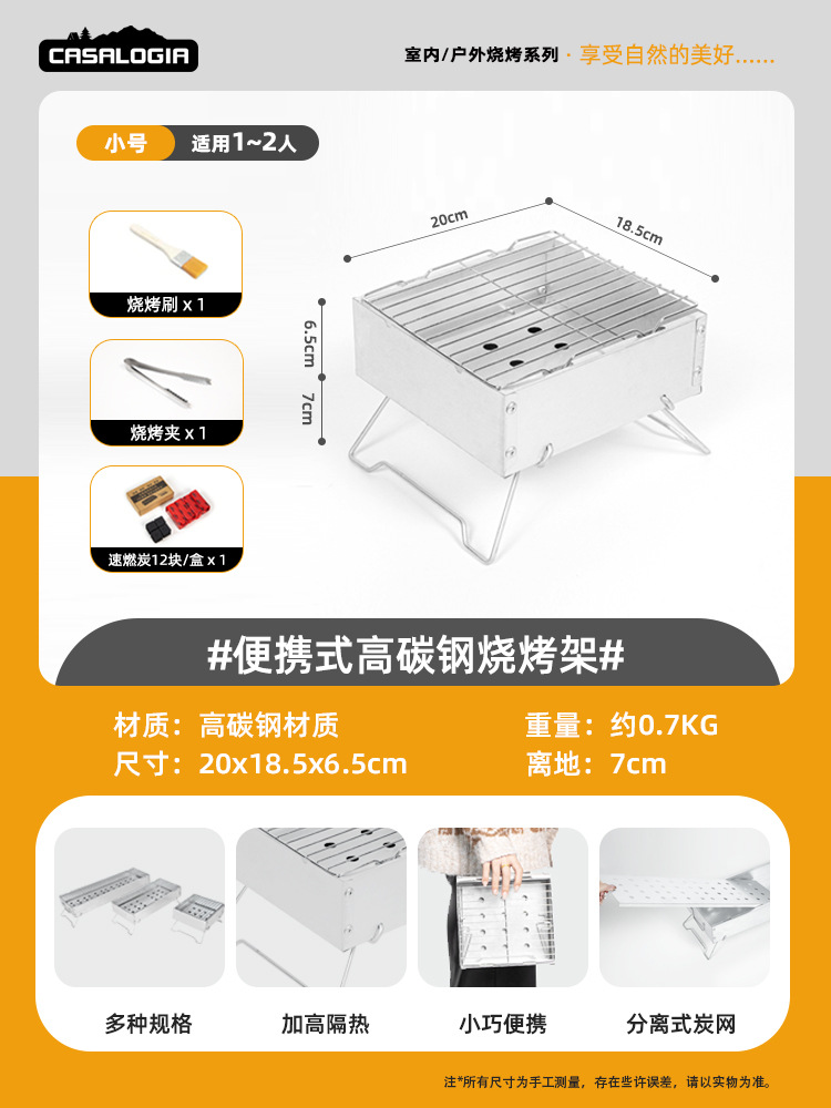 • 【소형 1-2인용】 휴대용 바베큐 그릴 + 바베큐 브러쉬 집게 *1 + 즉시 발화 숯 *1 ₡₲