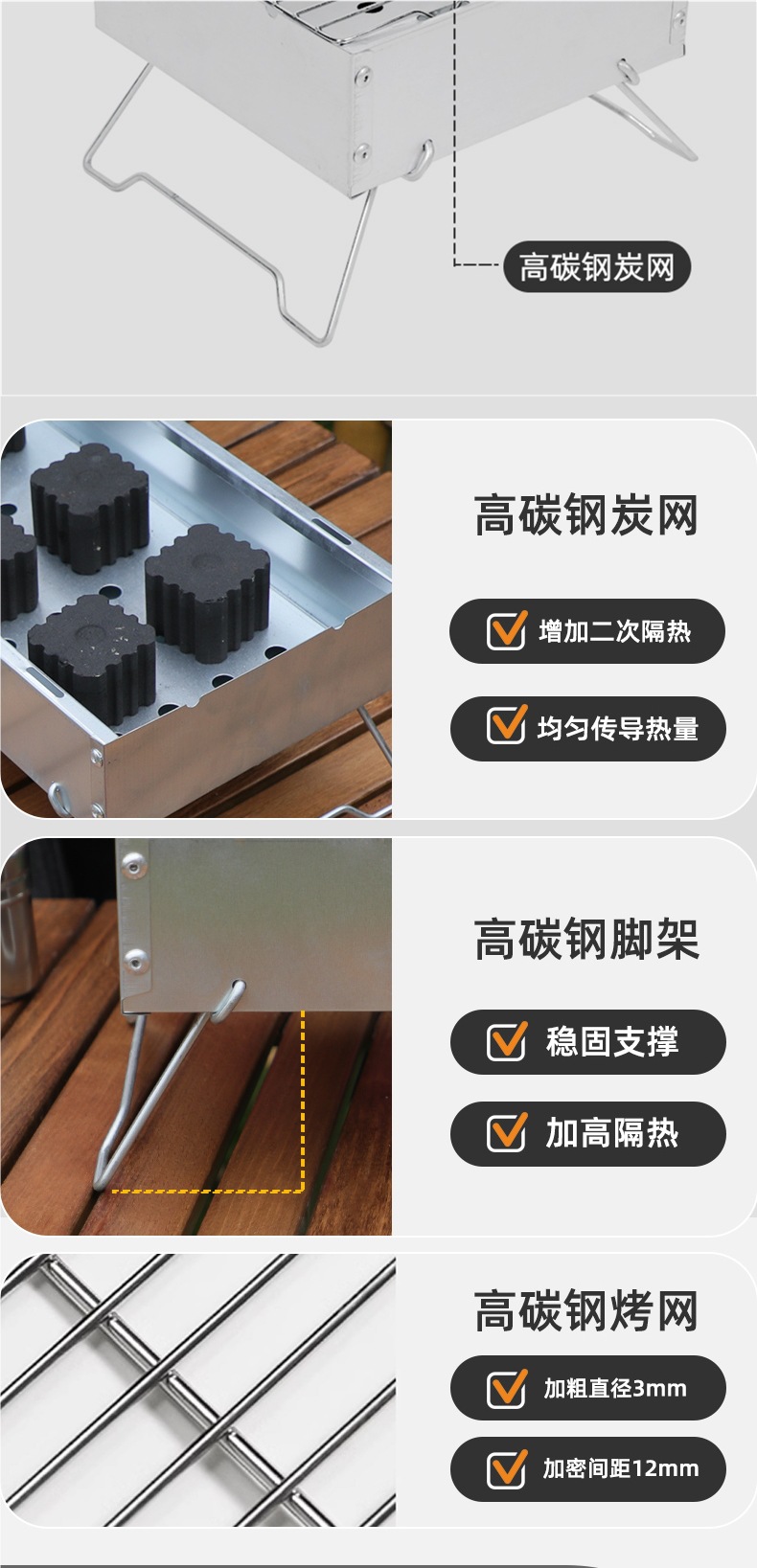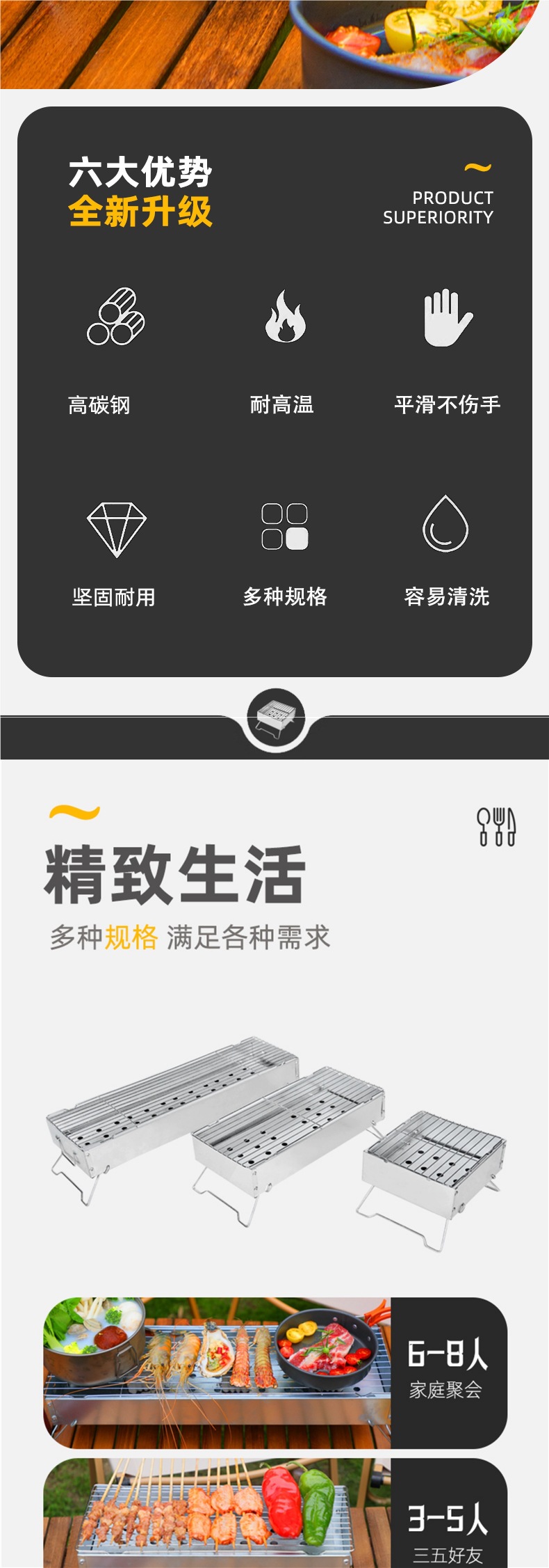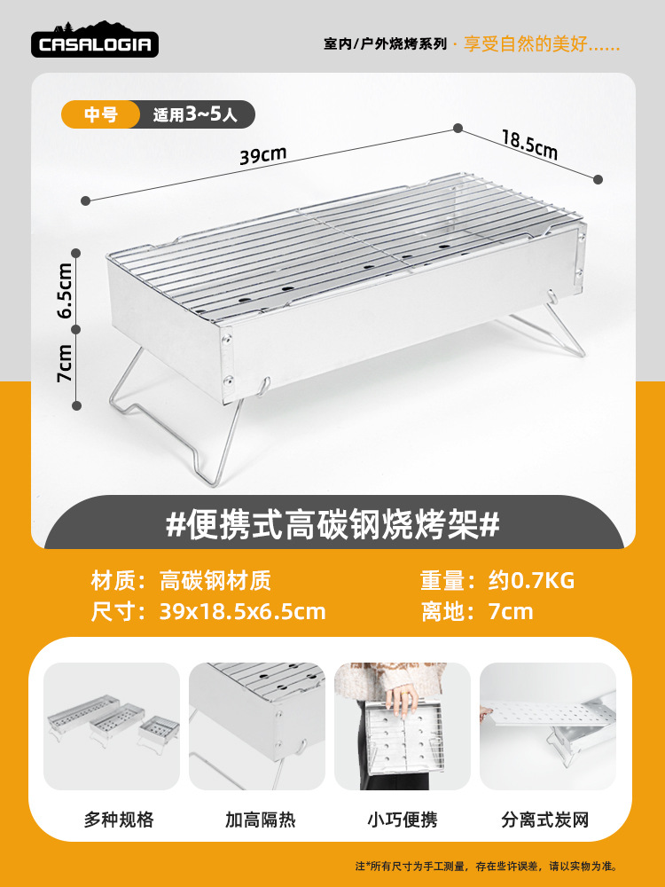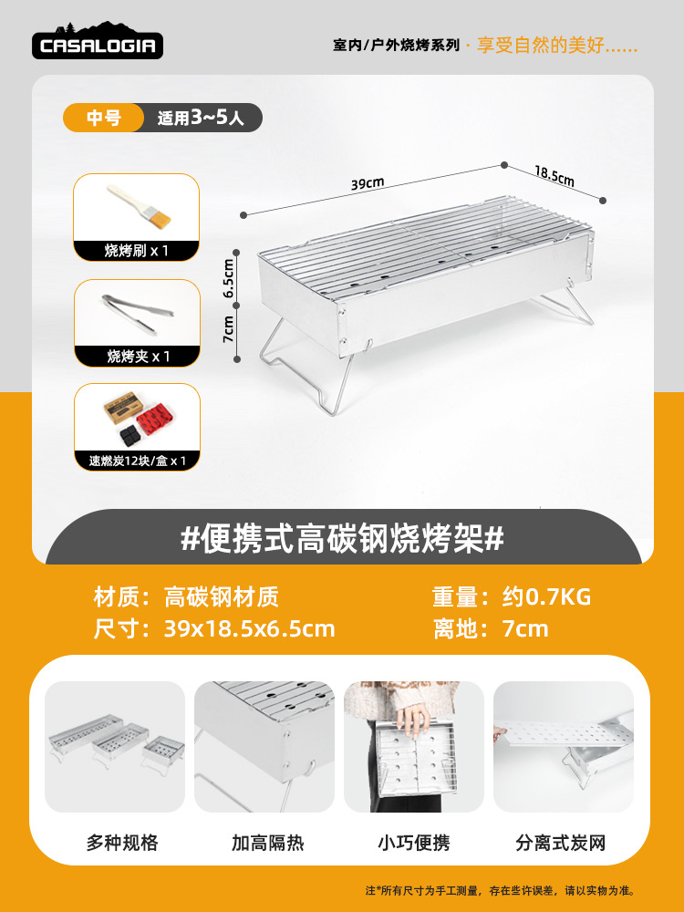 • 【중형 3-5인용】 휴대용 바베큐 그릴 + 바베큐 브러쉬 집게 *1 + 즉시 점화 숯 *1 ₡₲