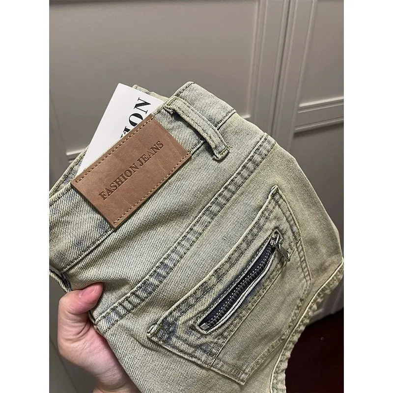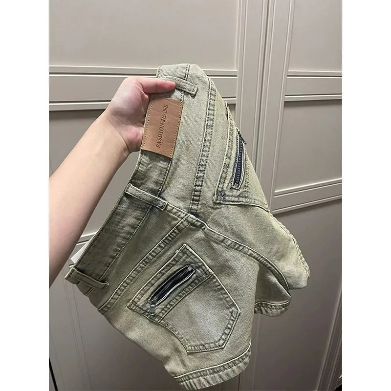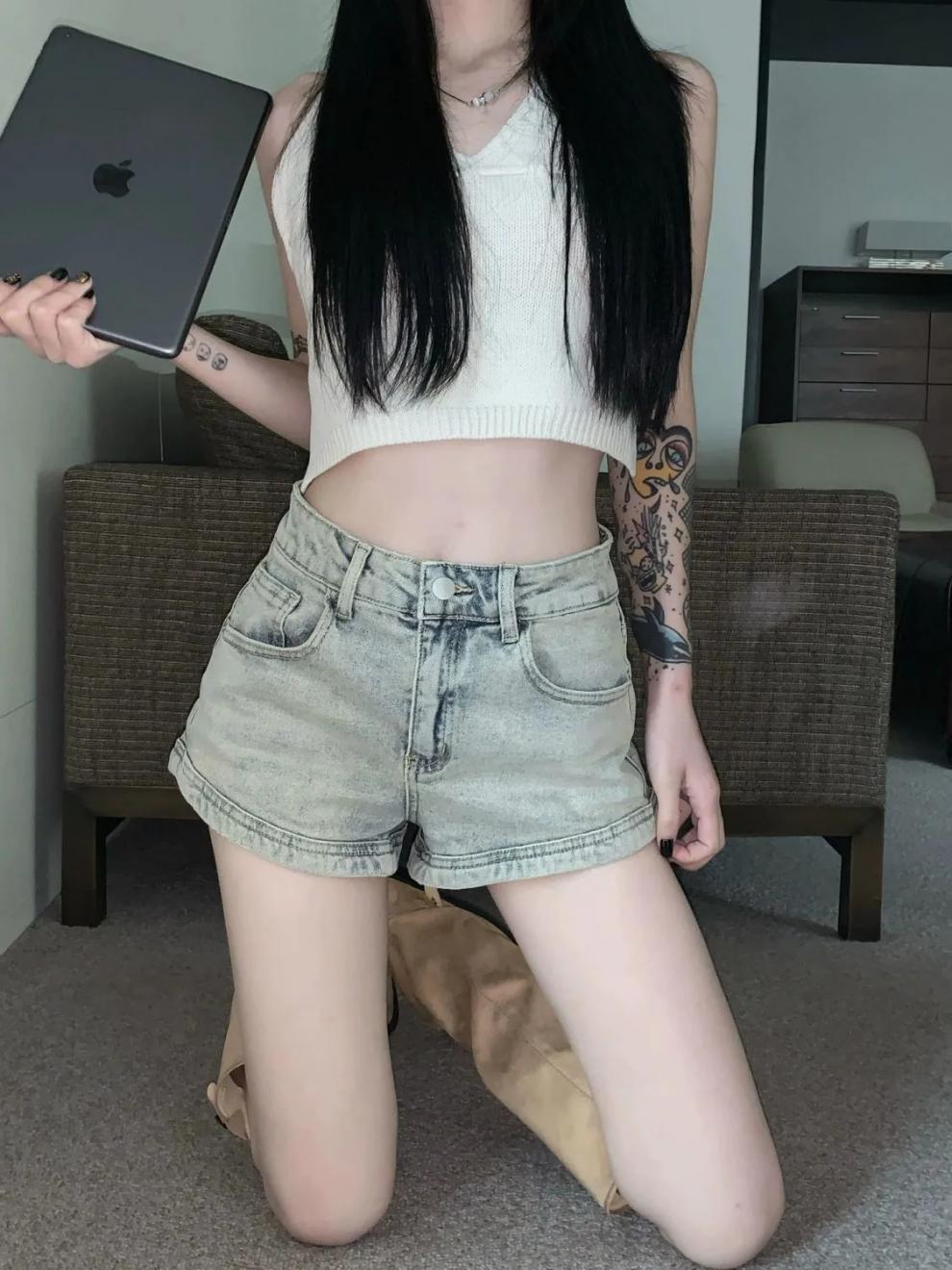 타이트한 슬림 스파이스 소녀 아메리칸 스타일 레트로 청바지 여성 여름 디자인 센스 A-워드 베이스 아우터 엉덩이 핫 팬츠 착용