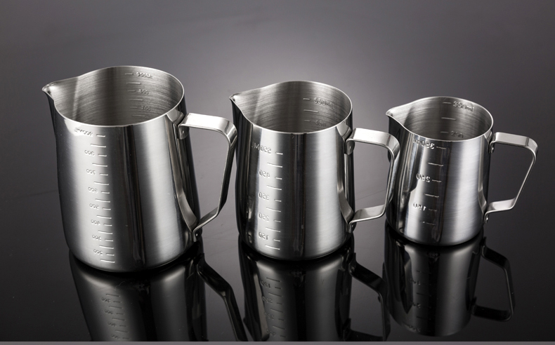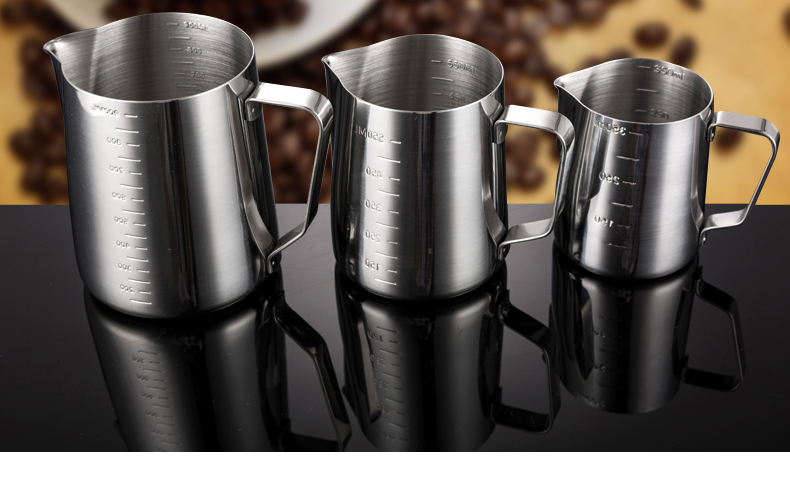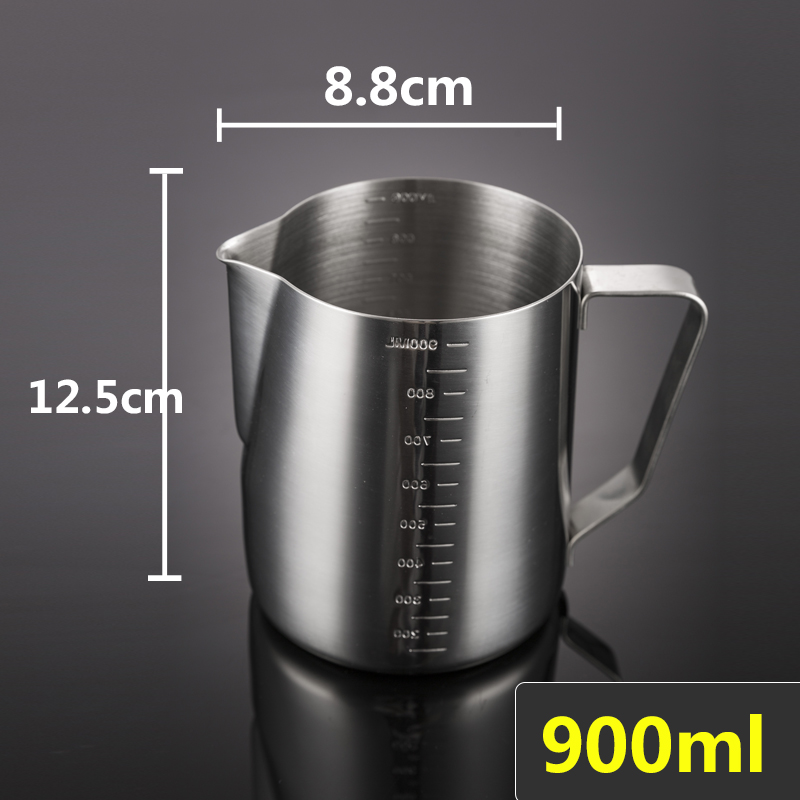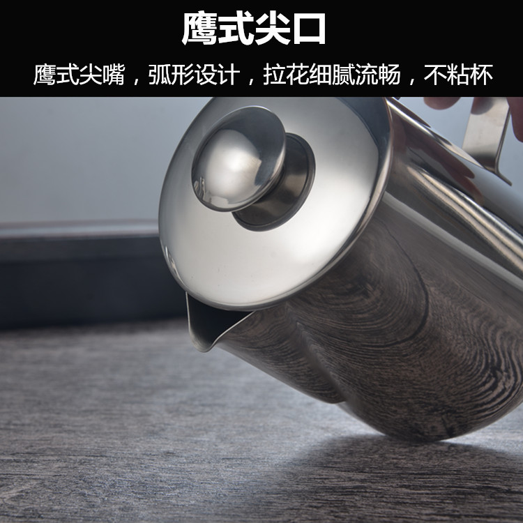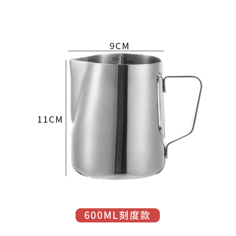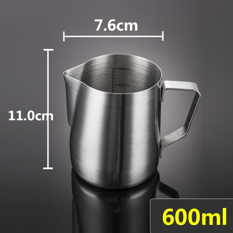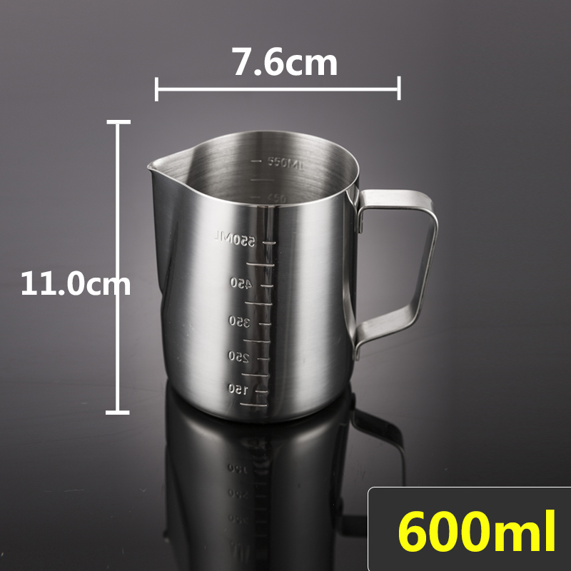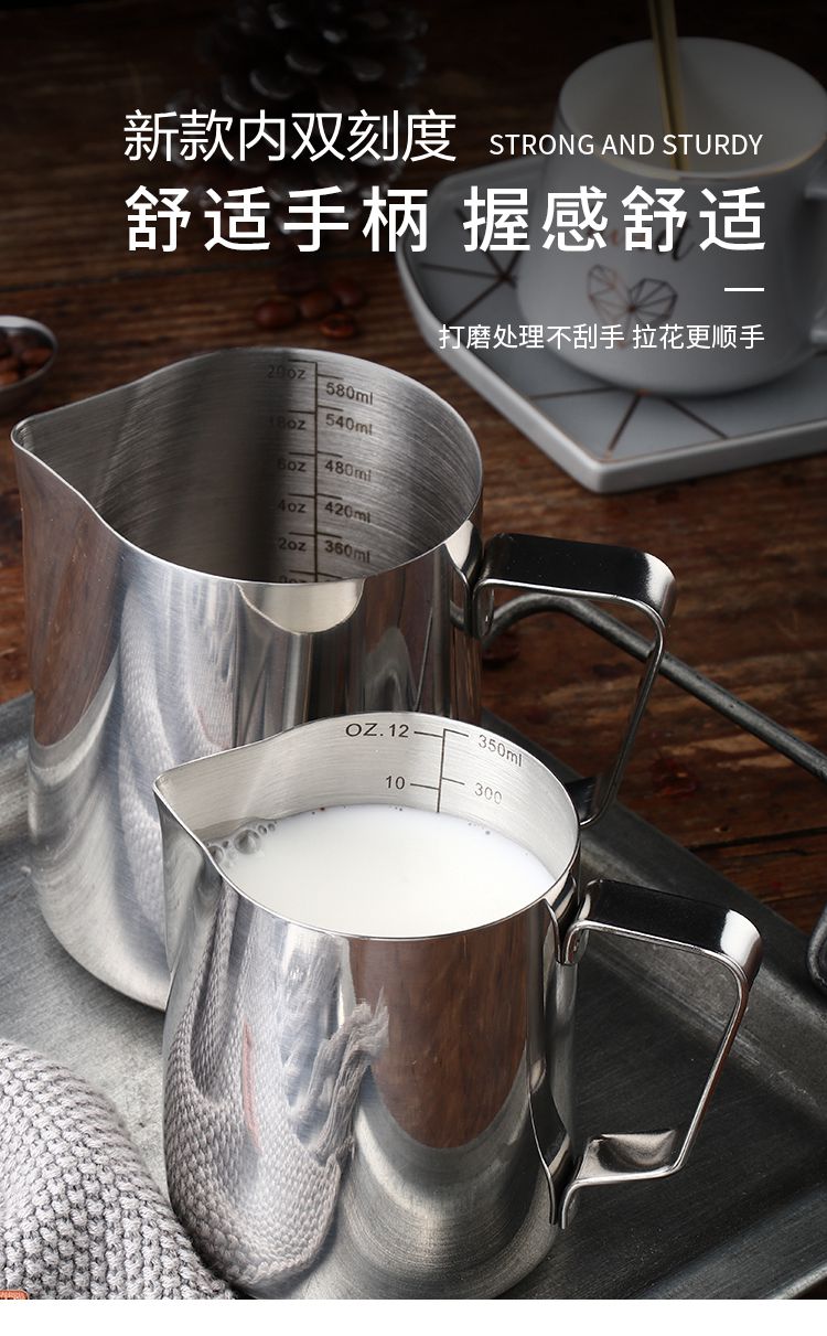 304 스테인레스 스틸 뾰족한 입 드로잉 컵 뚜껑과 스케일 측정 컵 커피 드로잉 병 우유 거품 컵 커피 포트