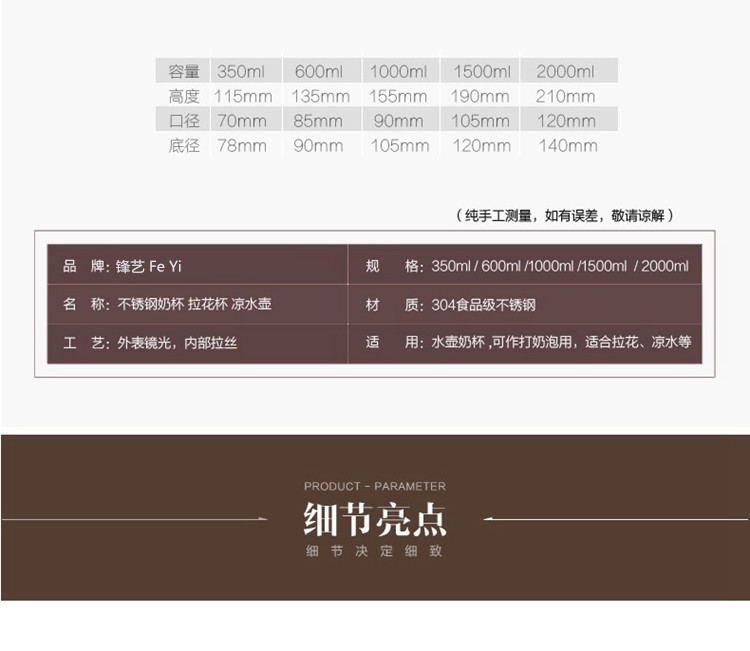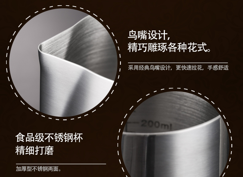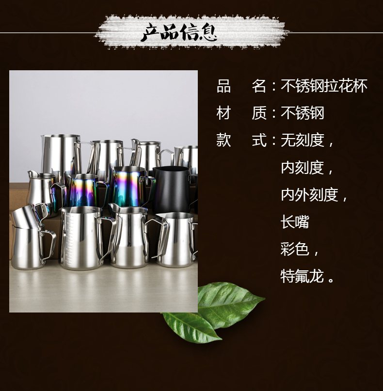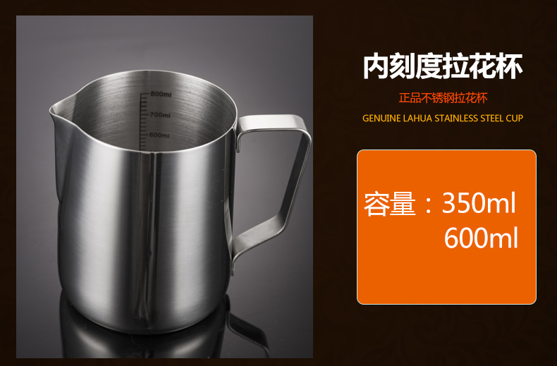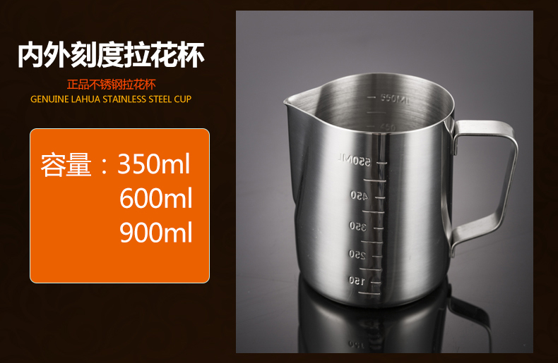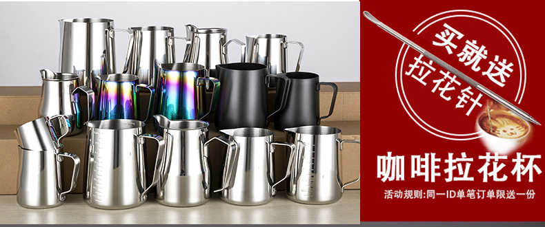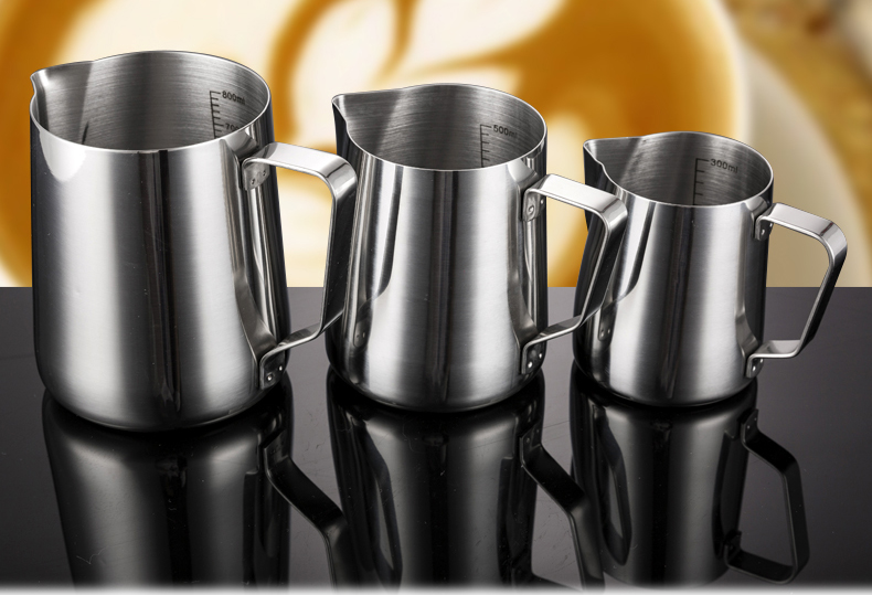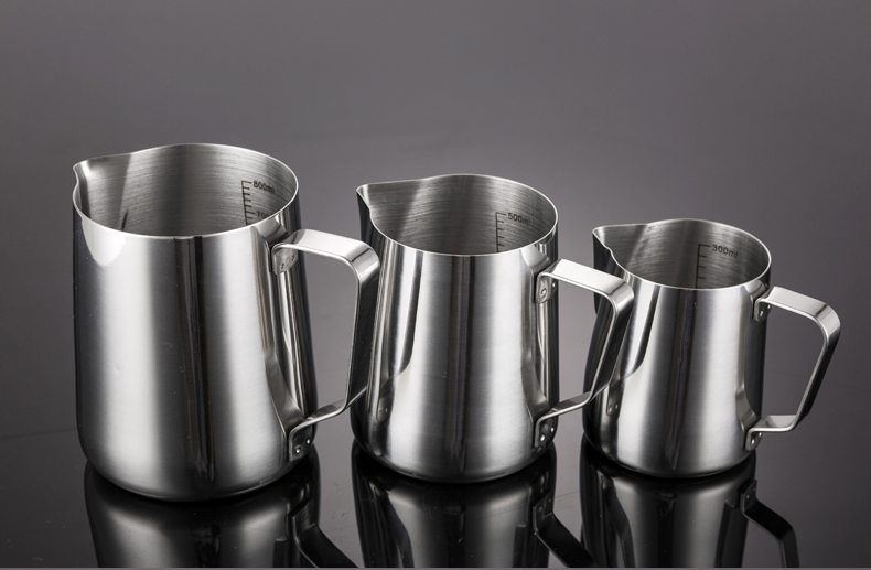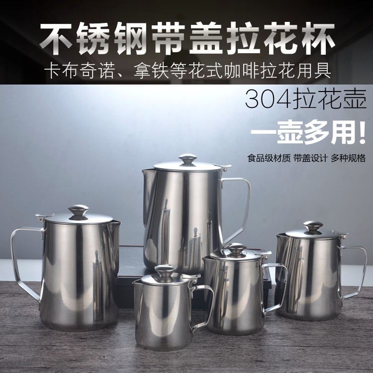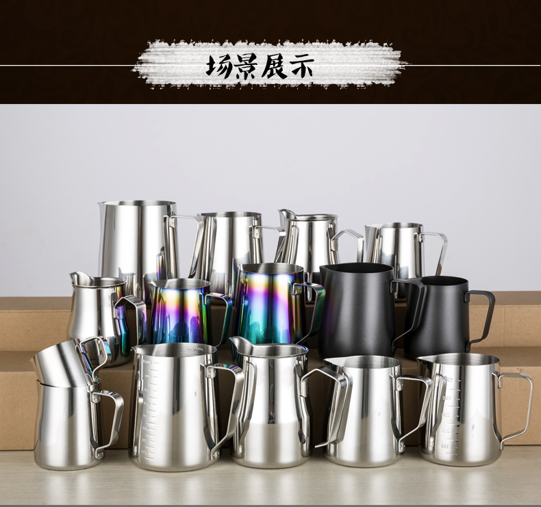 304 스테인레스 스틸 뾰족한 입 드로잉 컵 뚜껑과 스케일 측정 컵 커피 드로잉 병 우유 거품 컵 커피 포트