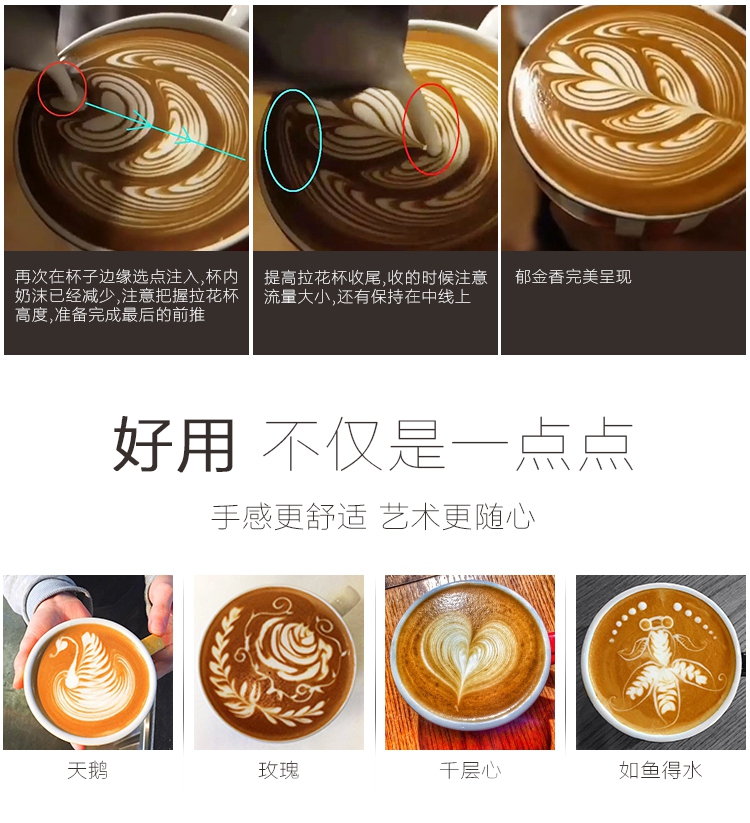 • 350ML 블랙(내부 눈금) 포인티드 라떼아트 컵 + 프리 라떼아트 바늘