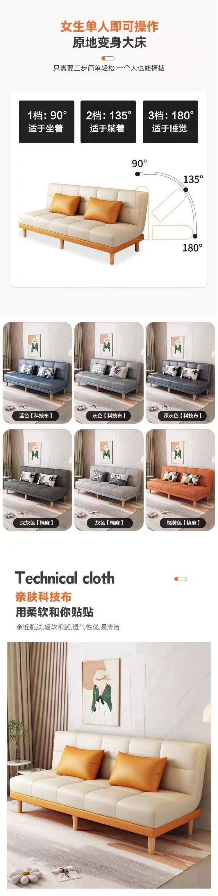 Huixian 가정용 소형 아파트 거실 다기능 더블 3 인 원단 소파 침실 임대 방 접이식 모래