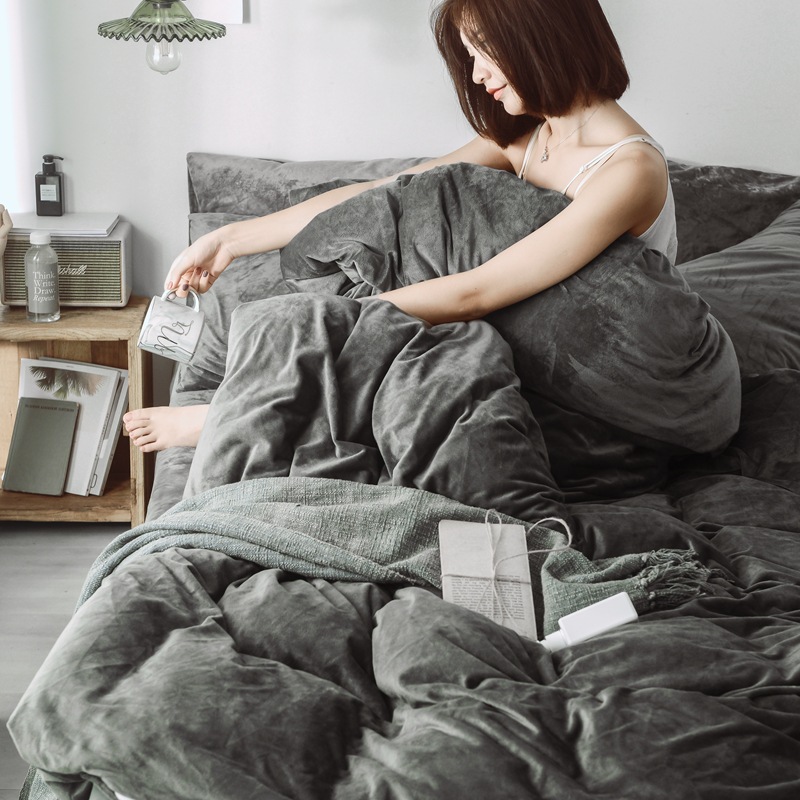 좋은 제품 인쇄되지 않은 벨벳 4 피스 세트 두꺼운 따뜻한 산호 벨벳 팔라이 짧은 울 양면 벨벳 샌딩 퀼트 커버 시트스토어 가기