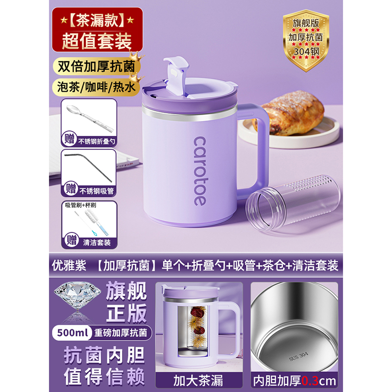 • 새롭게 업그레이드된 티창고 [무료 접이식 스푼] 엘레강트 퍼플 500ml + 빨대 + 클리닝 세트