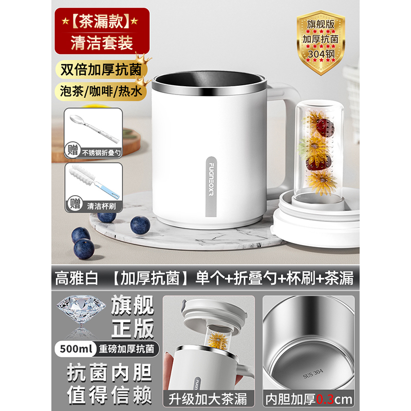 • 새롭게 업그레이드된 티창고 [무료 접이식 스푼] 엘레강트 화이트 500ml + 컵 브러쉬