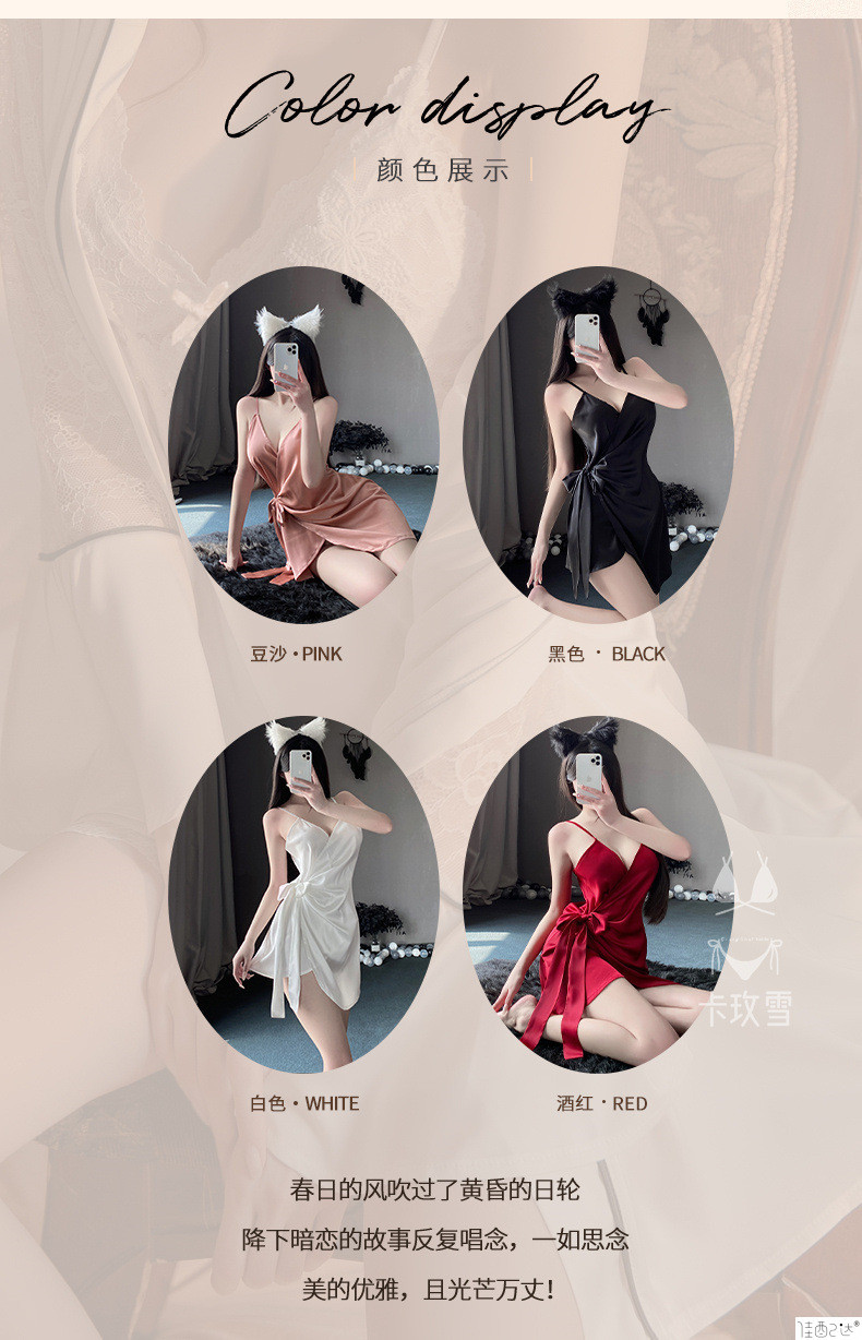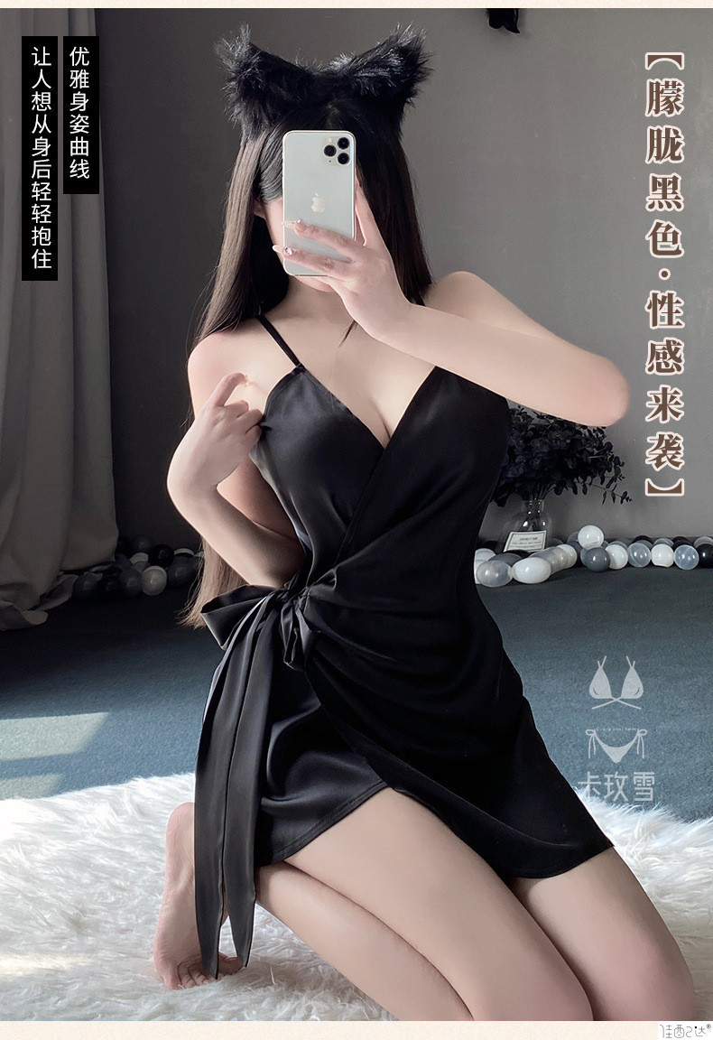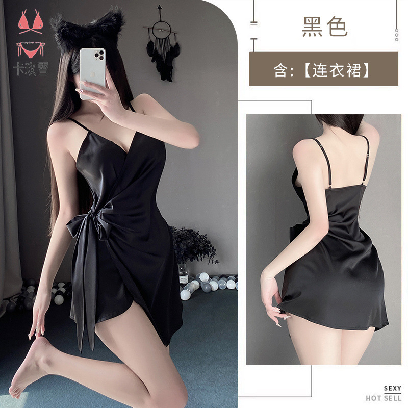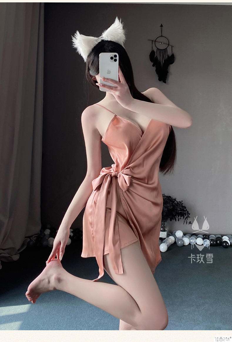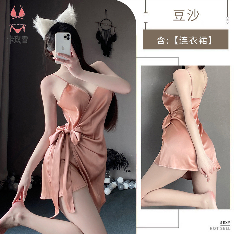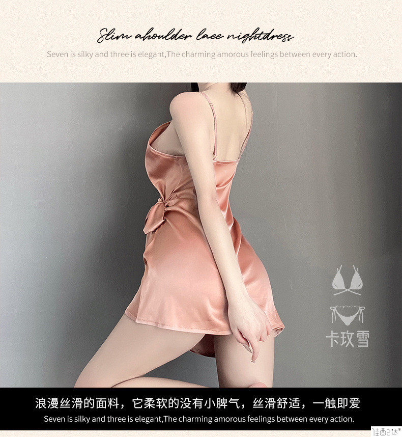 카메이 눈 섹시한 사계절 나이트 드레스 순수한 백리스 유혹 스트랩 짧은 스커트 스트랩 로맨틱 홈 나이트 드레스스토어 가기