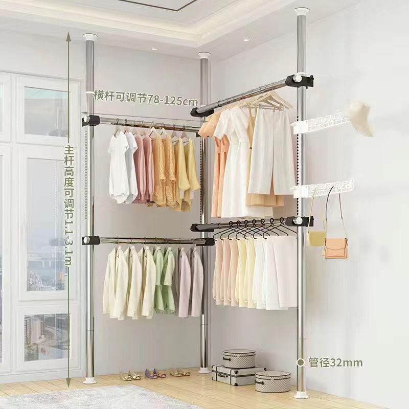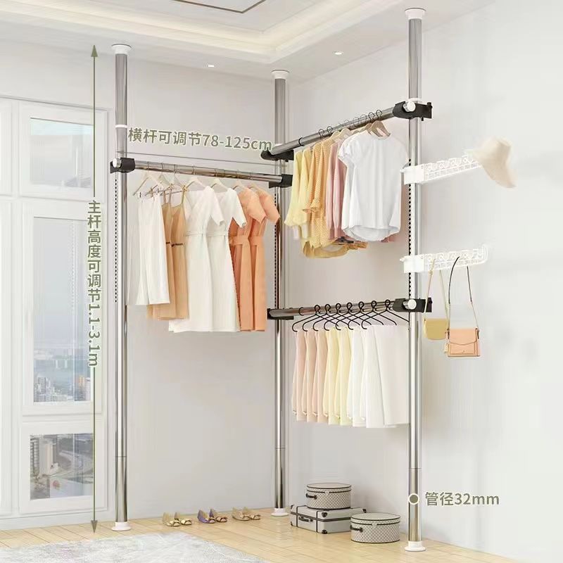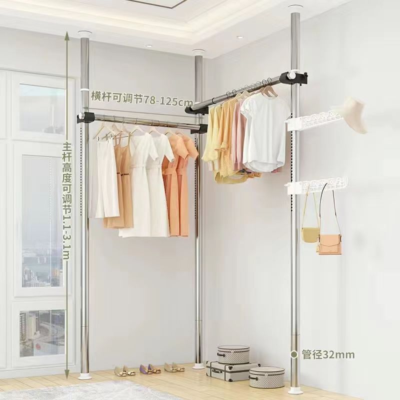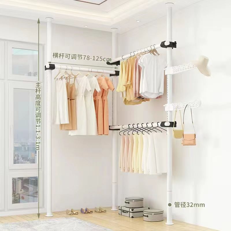 탑 스탠드 행거 폴 바닥-천장 조합 건조 랙 침실 내부 옷걸이 텔레스코픽 옷 폴 쿨 코트 랙
