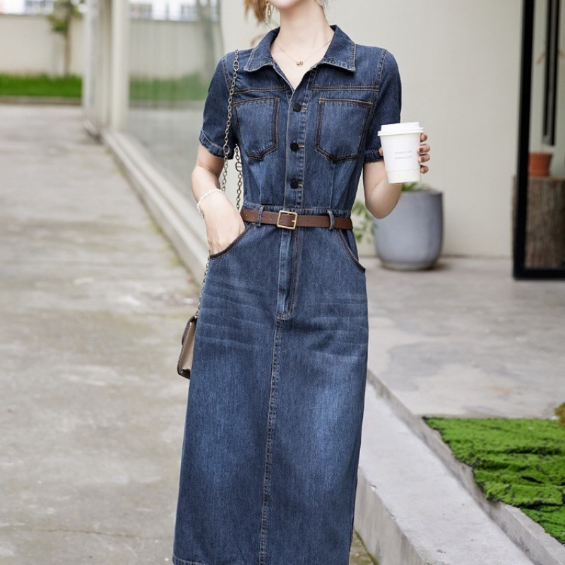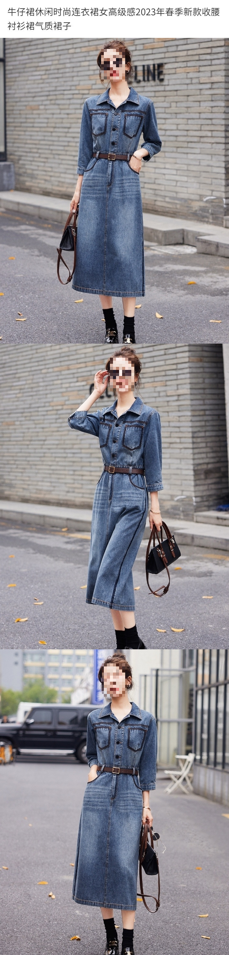 데님 치마 캐주얼 패션 원피스 여성 하이 센스 2025 봄 새로운 허리 셔츠 치마 우아한 치마스토어 가기