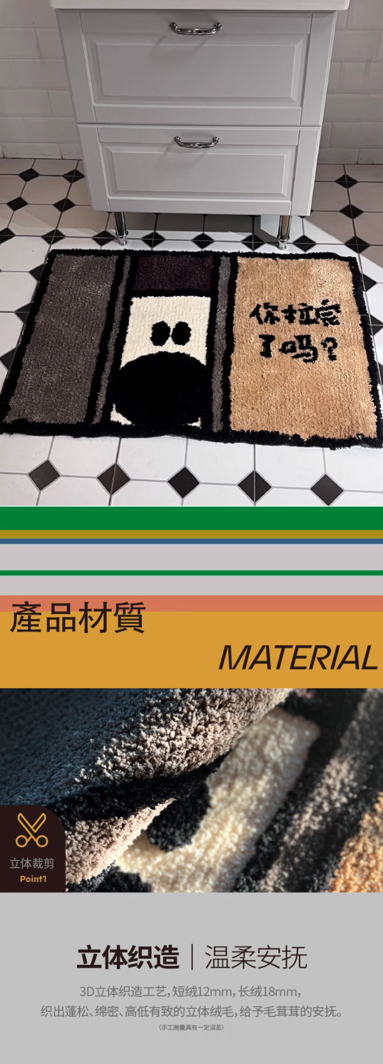 만화풍 캐시미어 느낌 욕실 흡수 매트, 터프티드 욕실 화장실 미끄럼 방지 발매트, 욕실 흡수 카펫