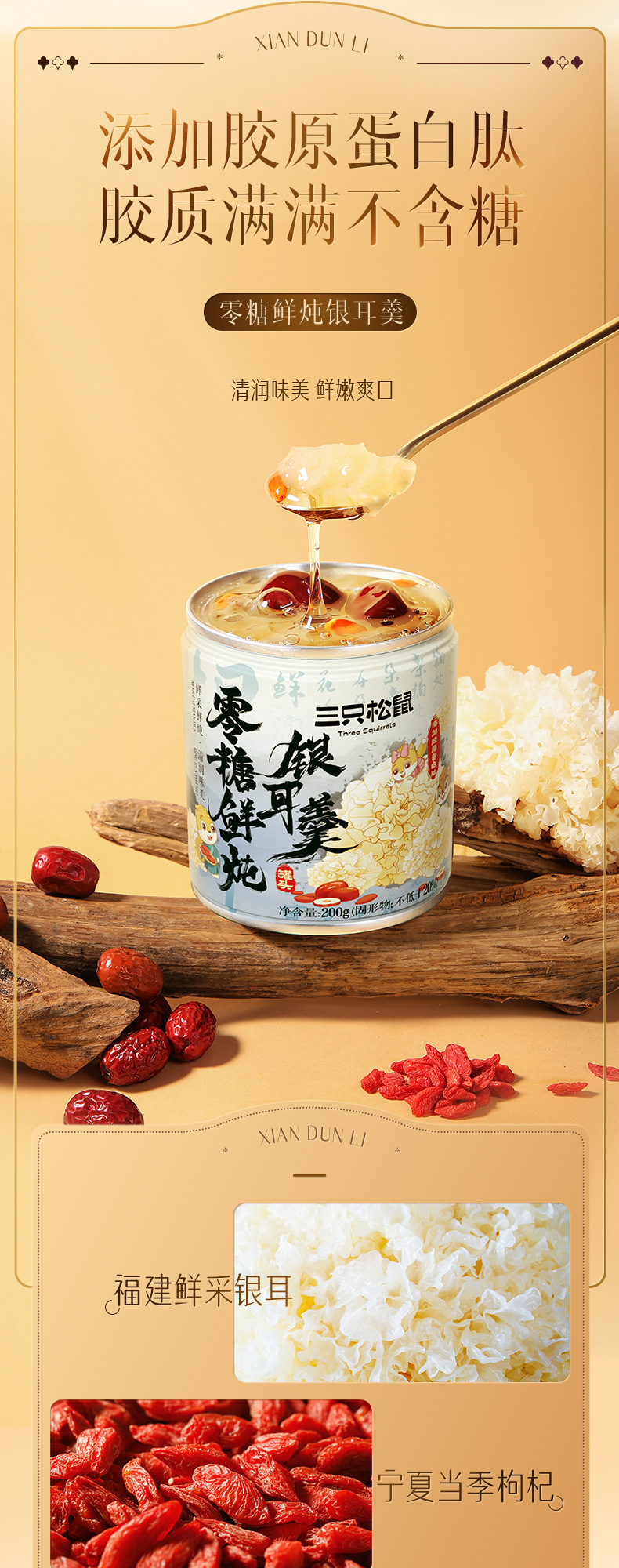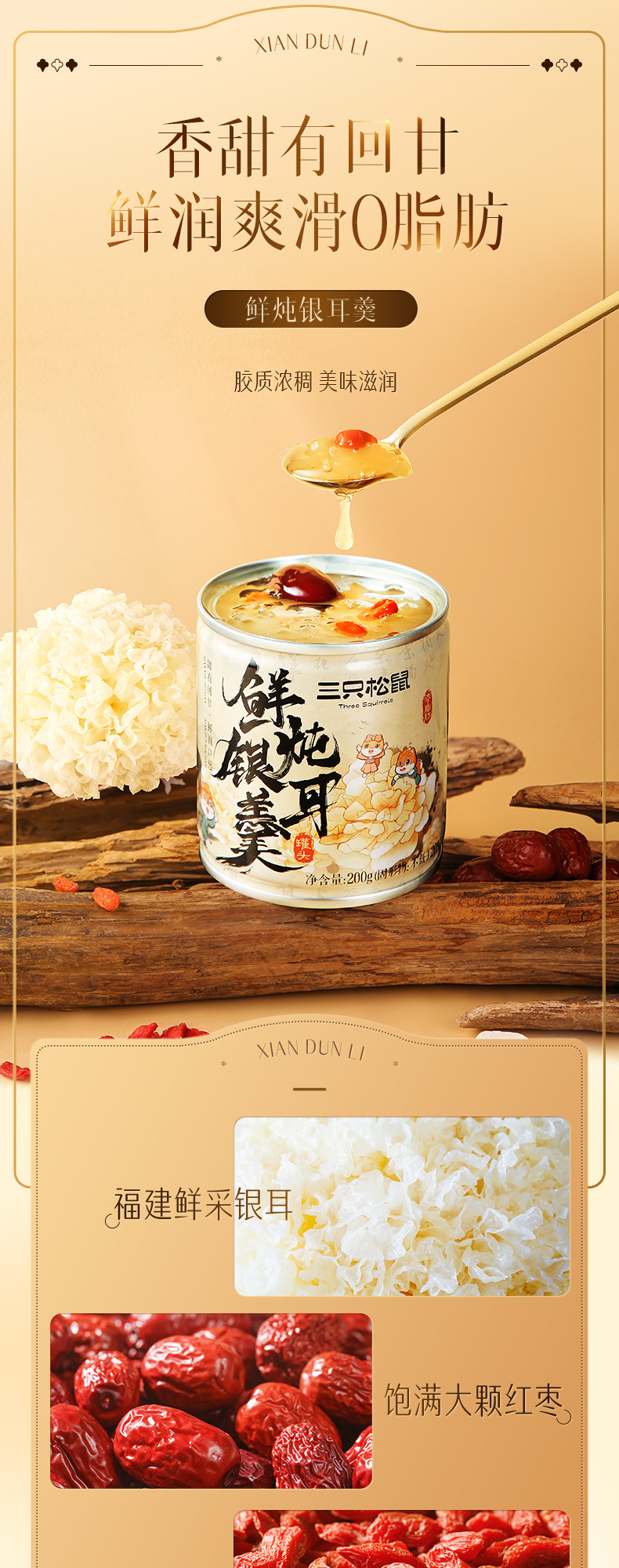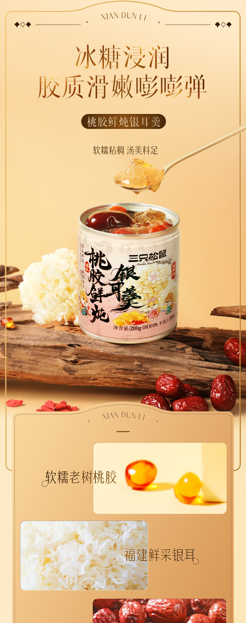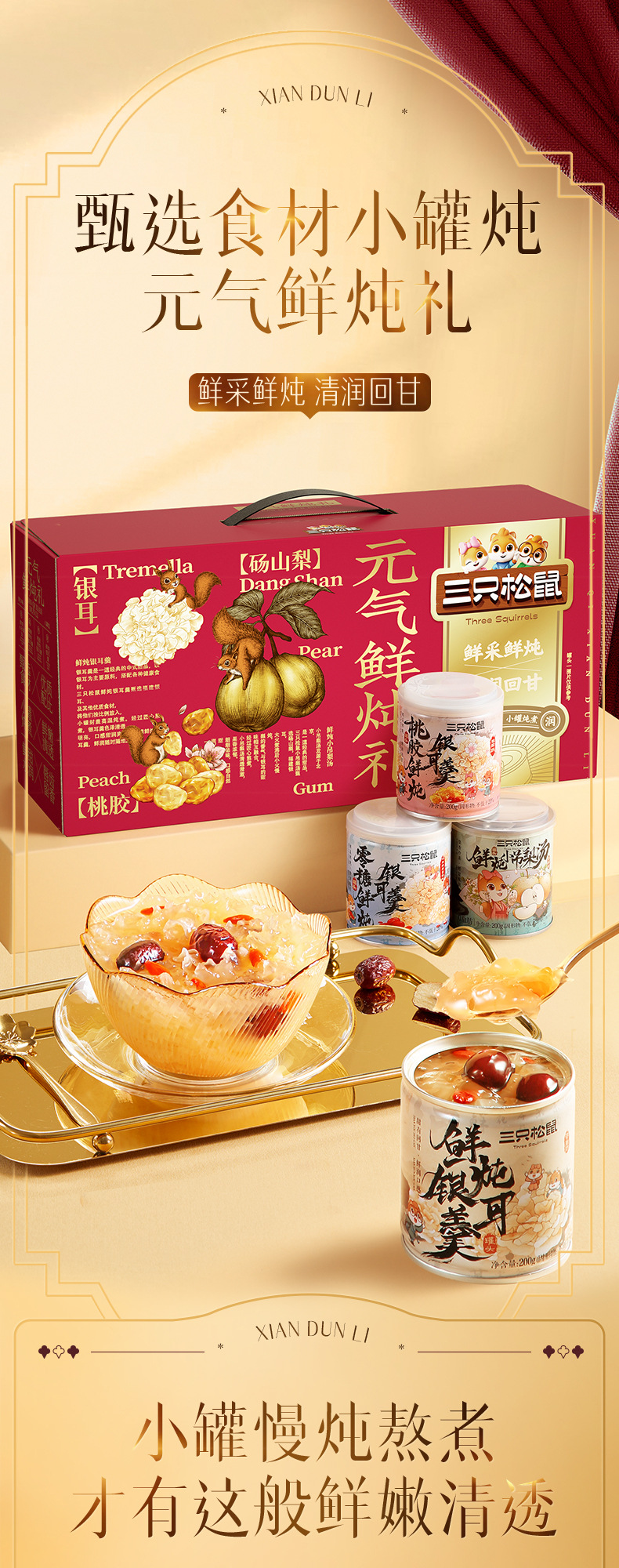 세 다람쥐, 활력, 신선한 스튜, 1600g 신선한 조림 붉은 날짜, 복숭아 껌, 메들라, 건강한 영양 실버 귀 수프, 선물스토어 가기