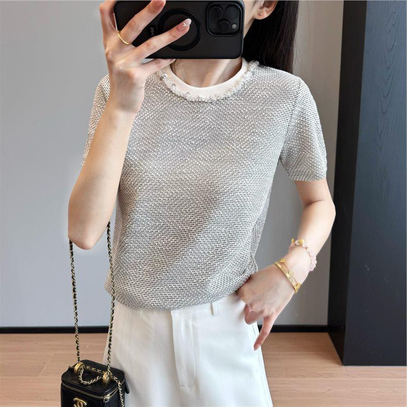 领口一圈精致钉珠+亮片设计,满满篙级感