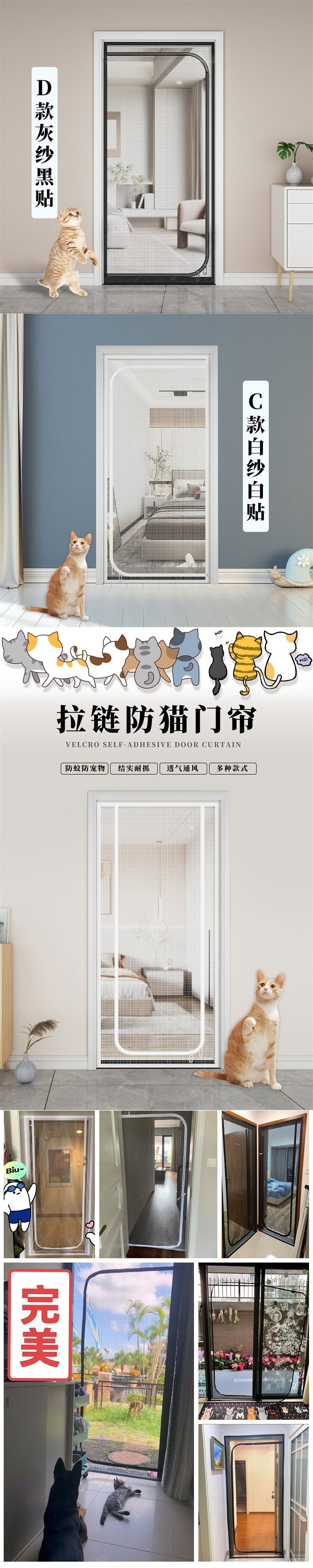 애완 동물을위한 침실 파티션 스크린 커튼 용 안티-고양이 스크린 지퍼 도어 커튼 안티-모기 벨크로 스크린 커튼