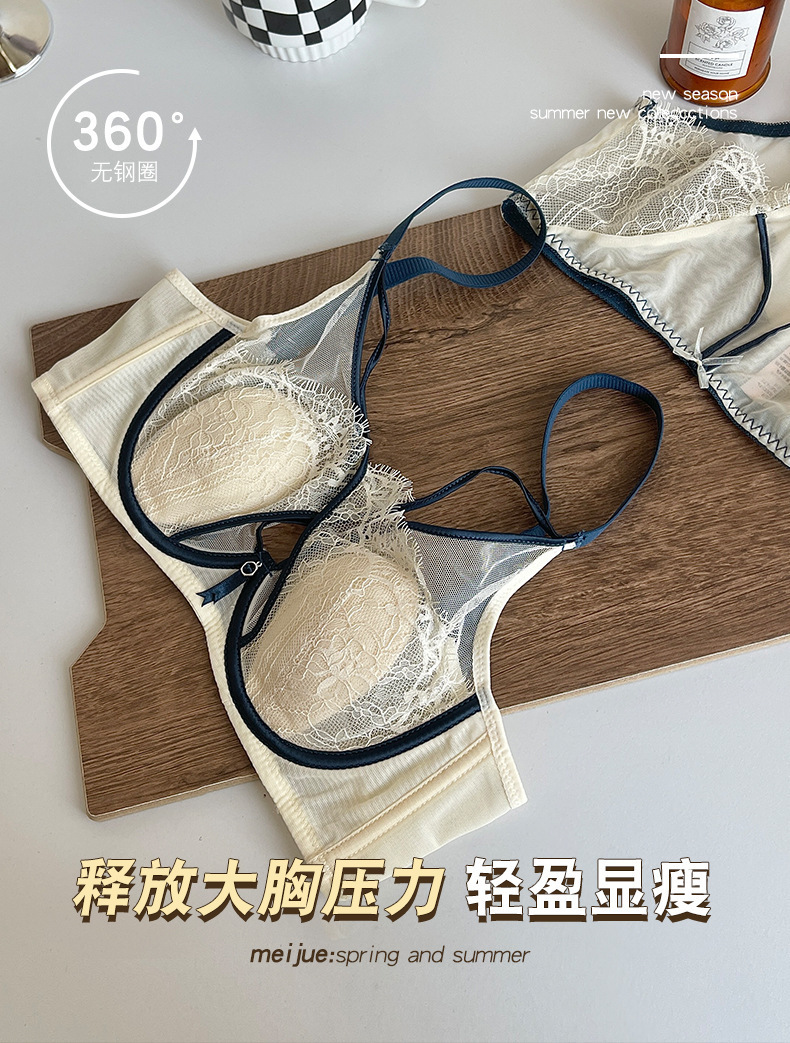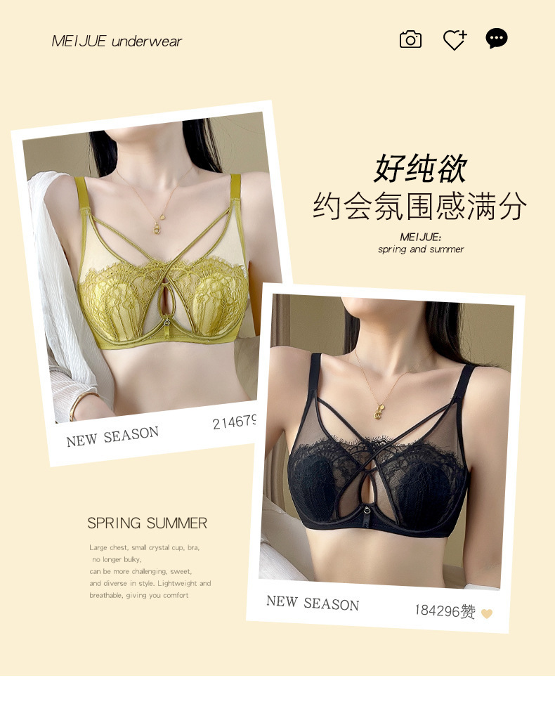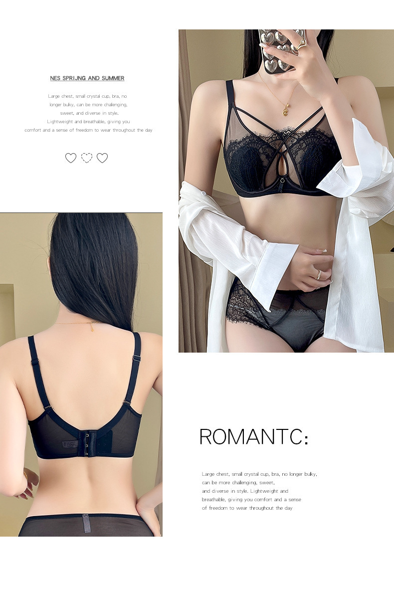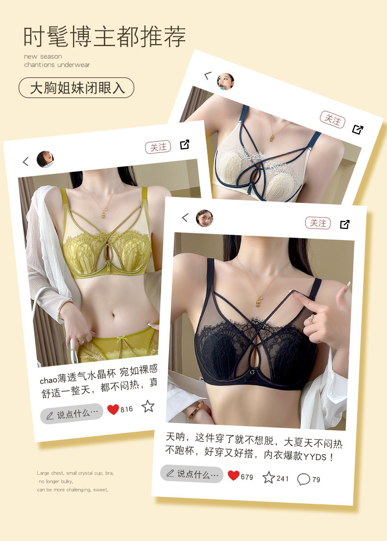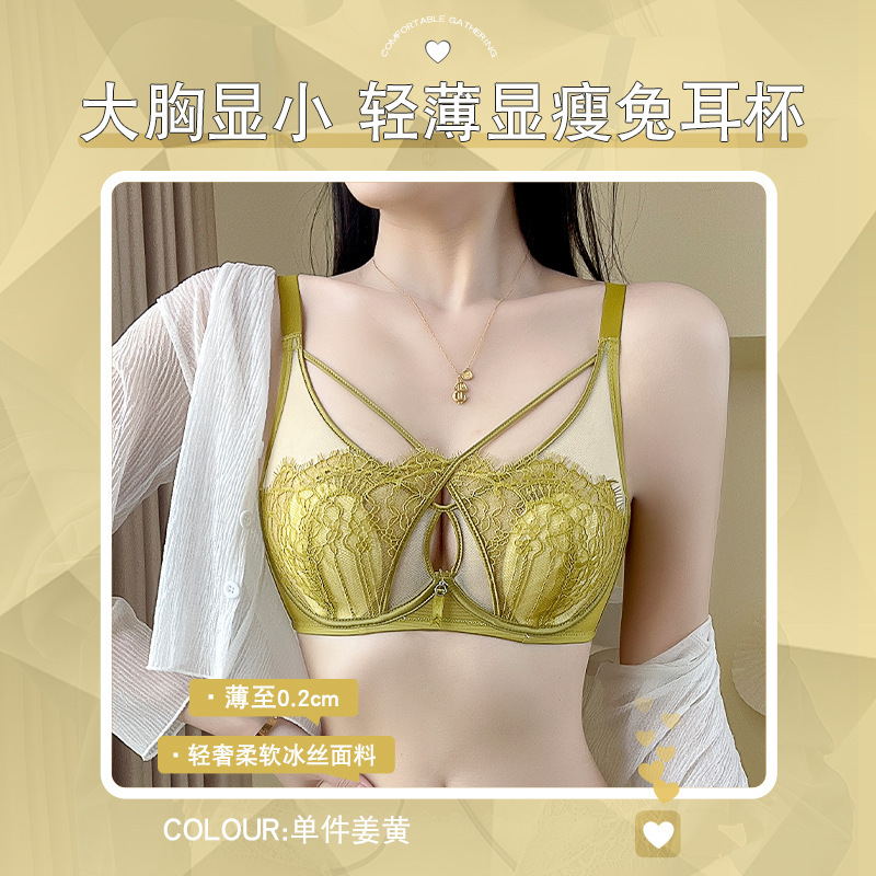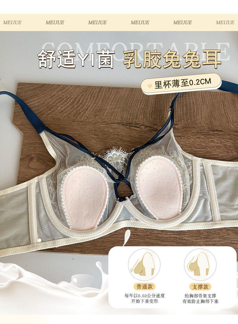 크리스탈 컵 토끼 귀 컵 속옷 큰 가슴 작은 섹시한 크로스 속눈썹 레이스 소프트 스틸 링 얇은 라텍스 브라
