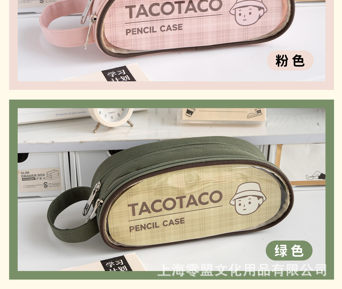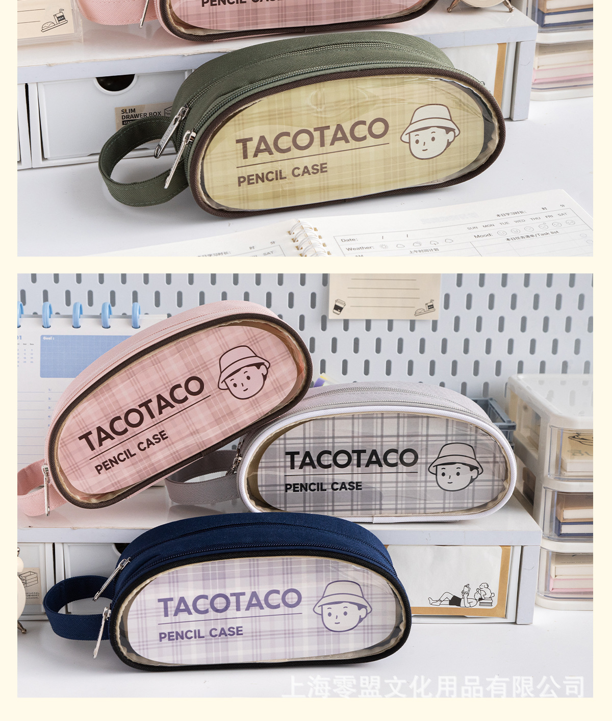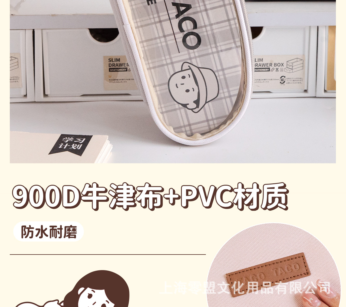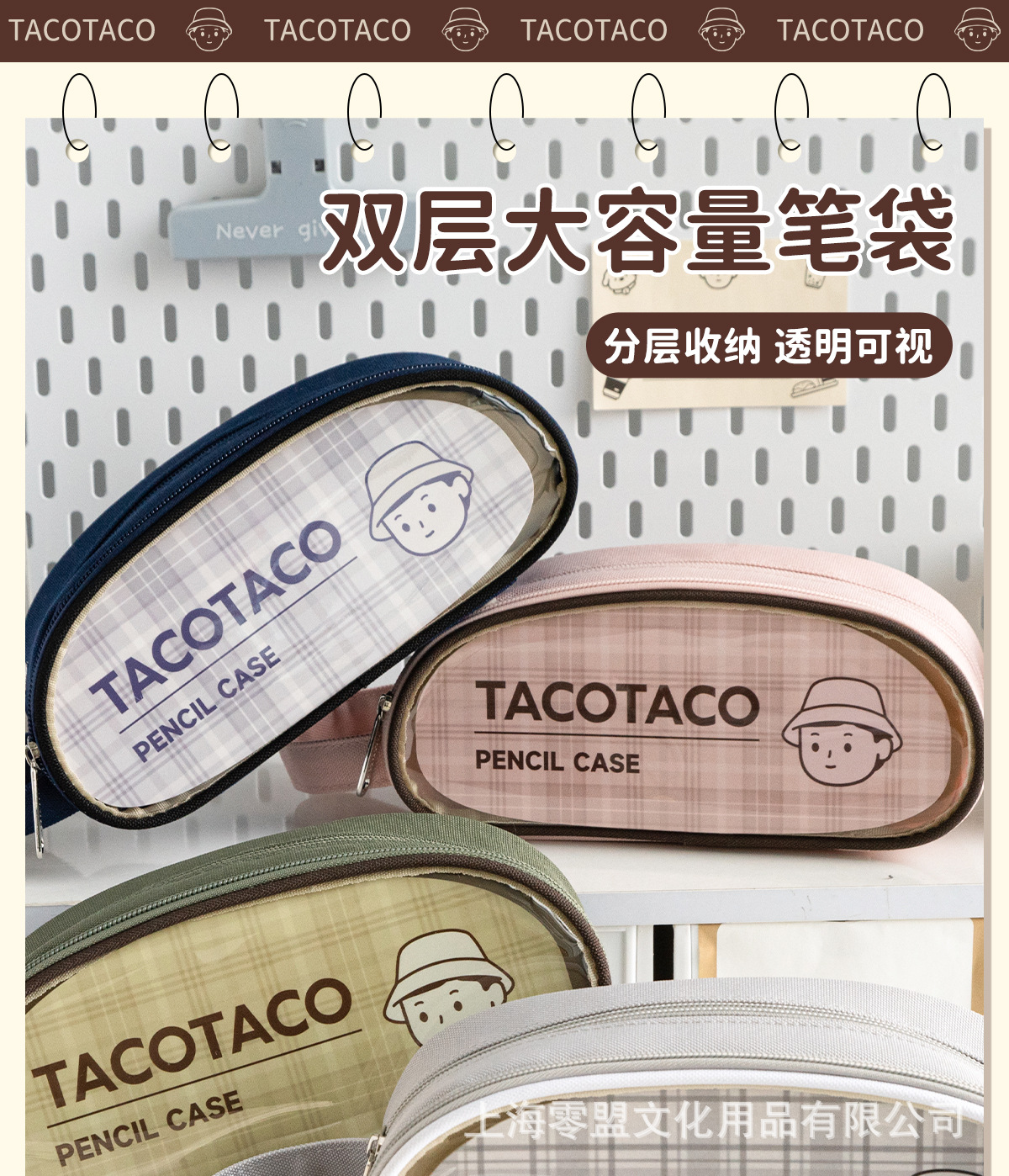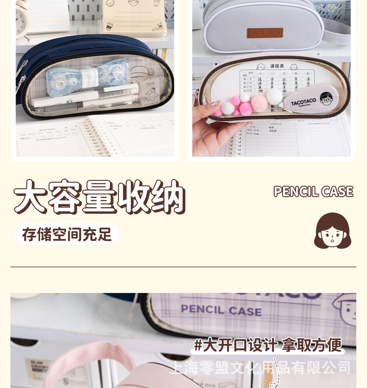 TACOTACO 시리즈 더블 레이어 대용량 필기 연필 케이스 옥스포드 천 창조적 인 학생 문구 보관 벨트 수업 일정