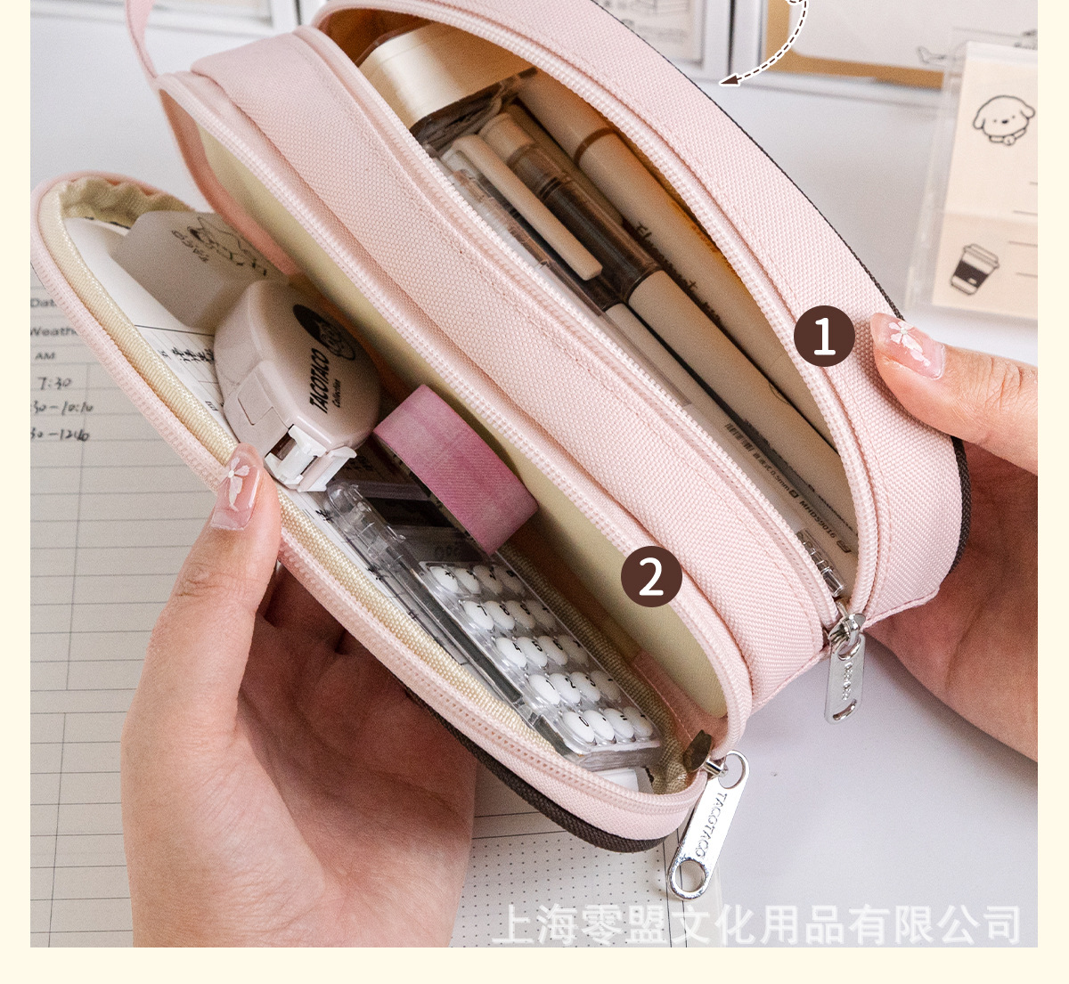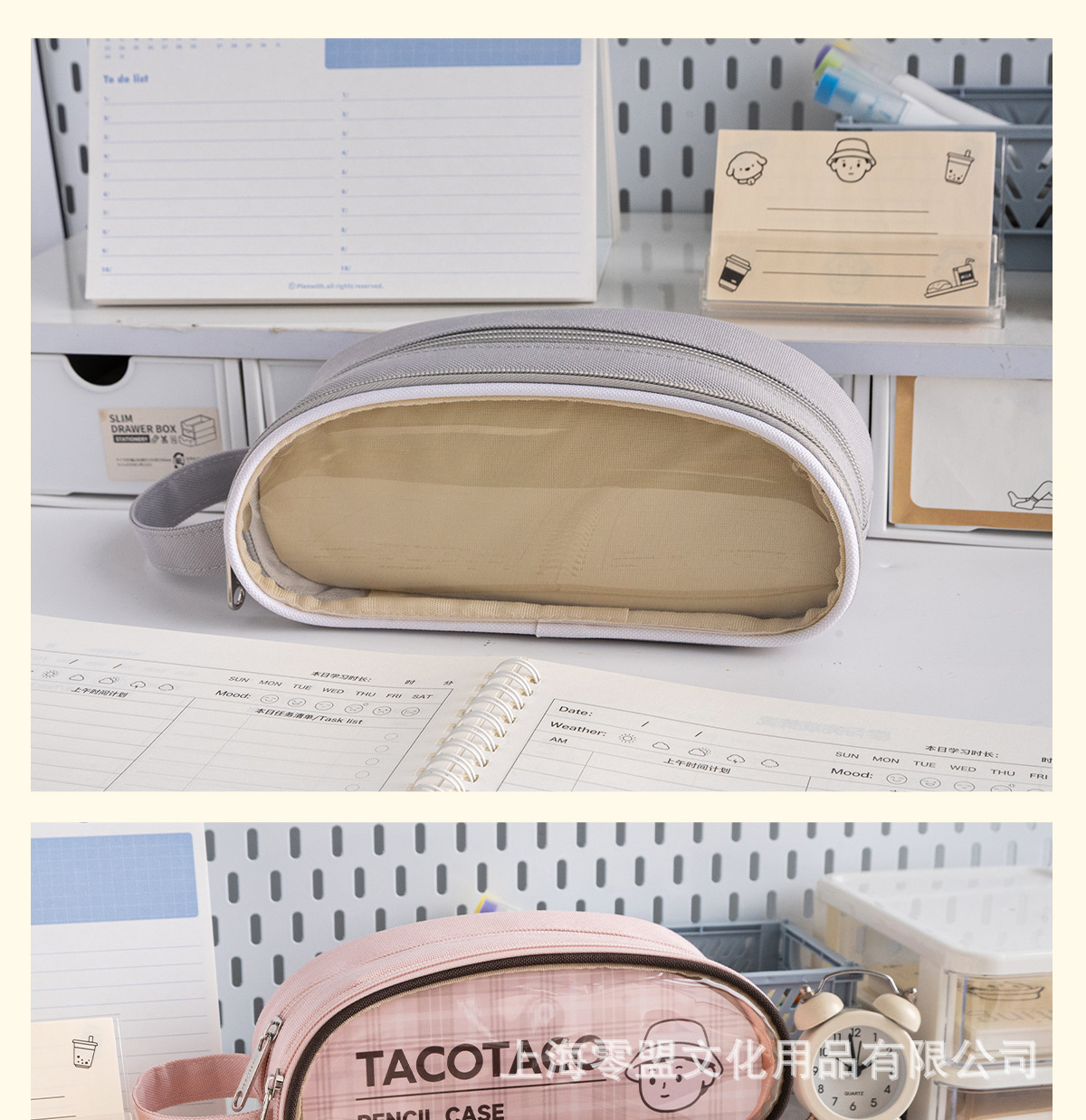 • 타코타코 타원형 더블 레이어 필통 [핑크]