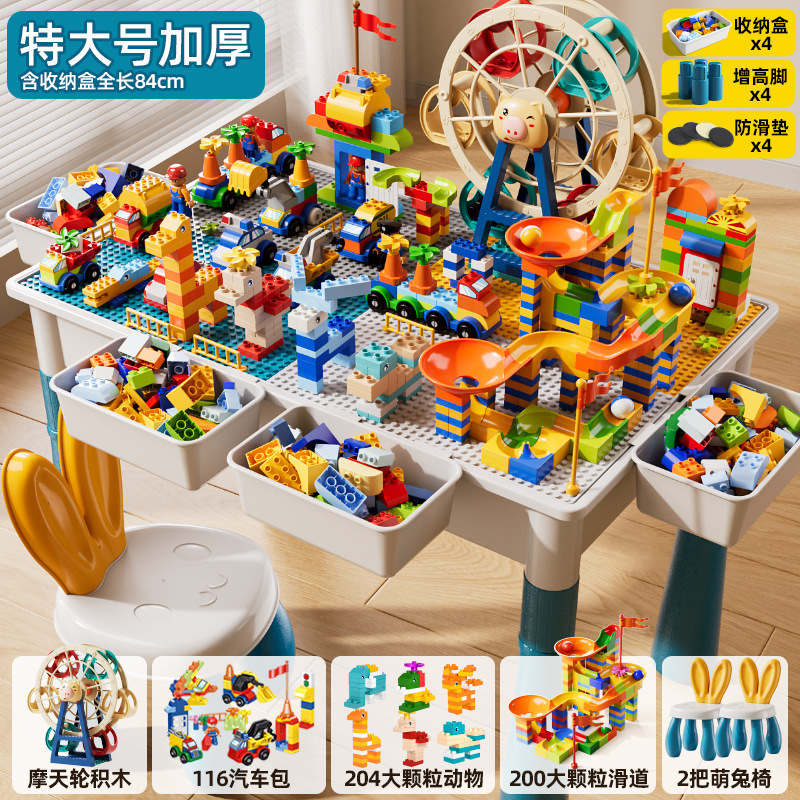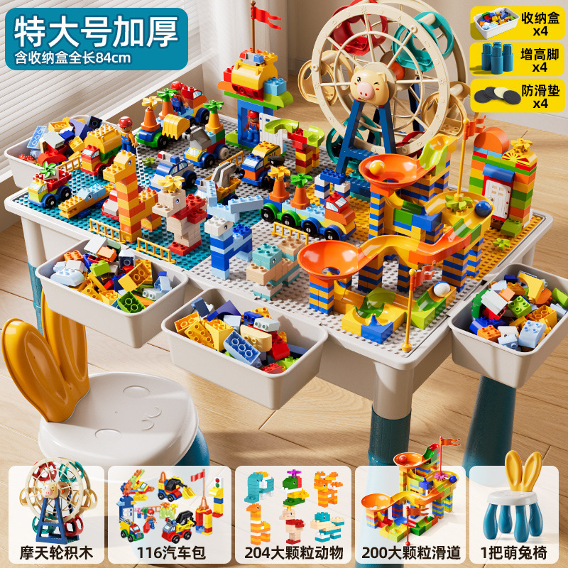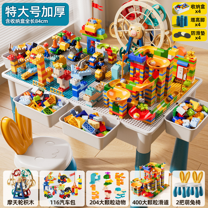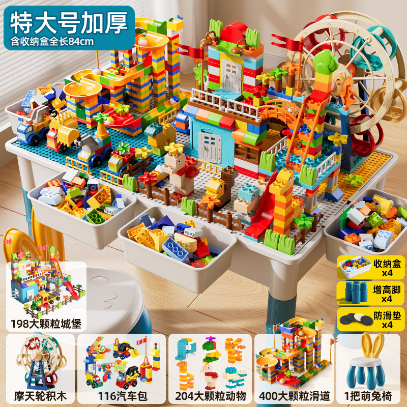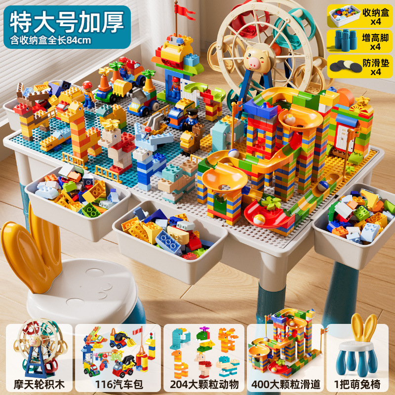 • ⭐업그레이드된 초대형 디럭스 버전 빌딩 블록 테이블과 의자 2개⭐성 + 관람차 116 대형 자동차 입자 400 슬라이드 대형 입자 204 대형 동물 입자.