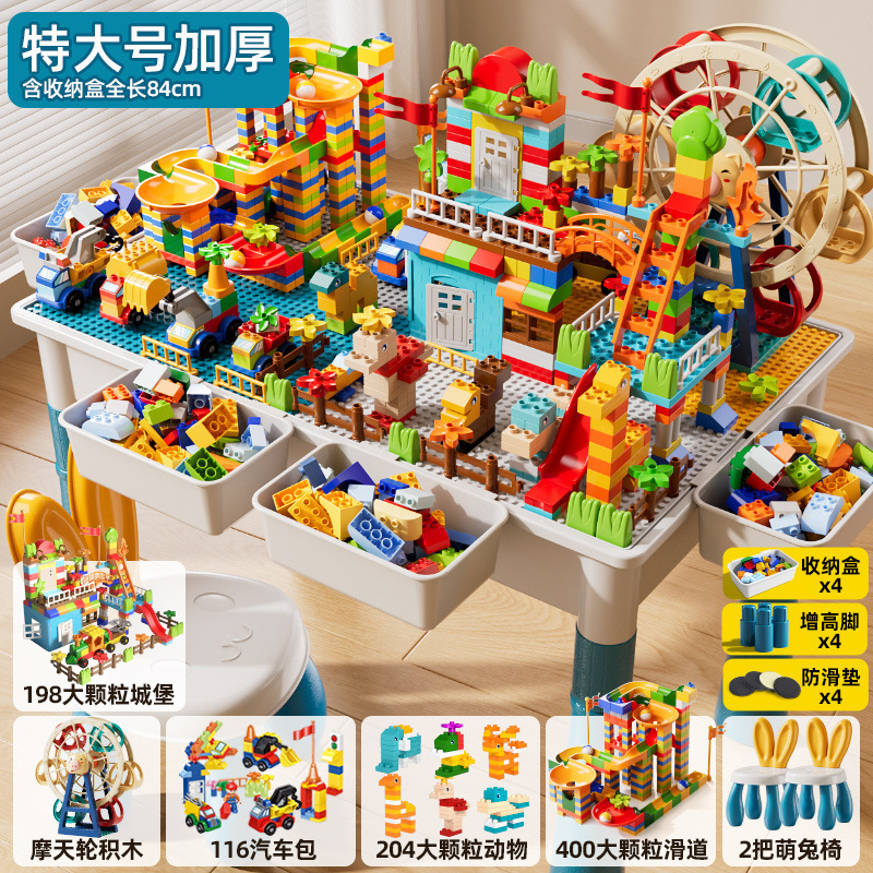 • ⭐업그레이드된 초대형 디럭스 버전 빌딩 블록 테이블과 의자 1개⭐성 + 관람차 116 대형 자동차 입자 400 슬라이드 대형 입자 204 대형 동물 입자.