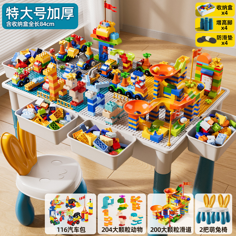 • ⭐업그레이드된 초대형 빌딩 블록 테이블과 의자 1개⭐자동차 큰 입자 116개 + 슬라이드 큰 입자 200개 + 동물 큰 입자 204개.