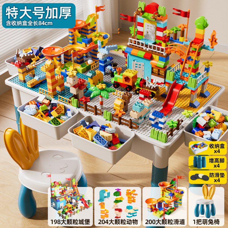 • ⭐업그레이드된 초대형 빌딩 블록 테이블과 의자 1개⭐200개의 큰 슬라이드 입자 + 204개의 큰 동물 입자.