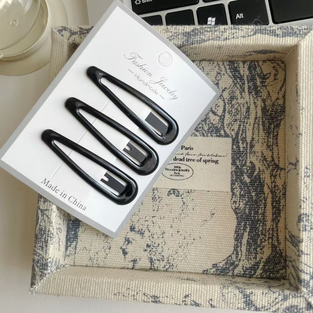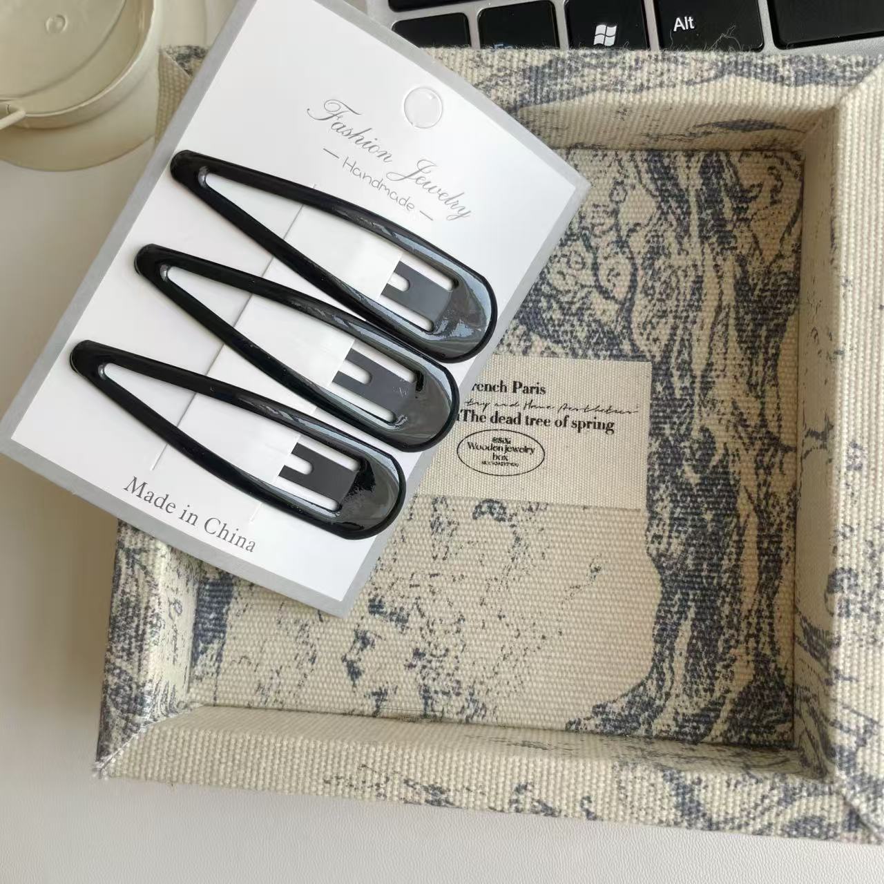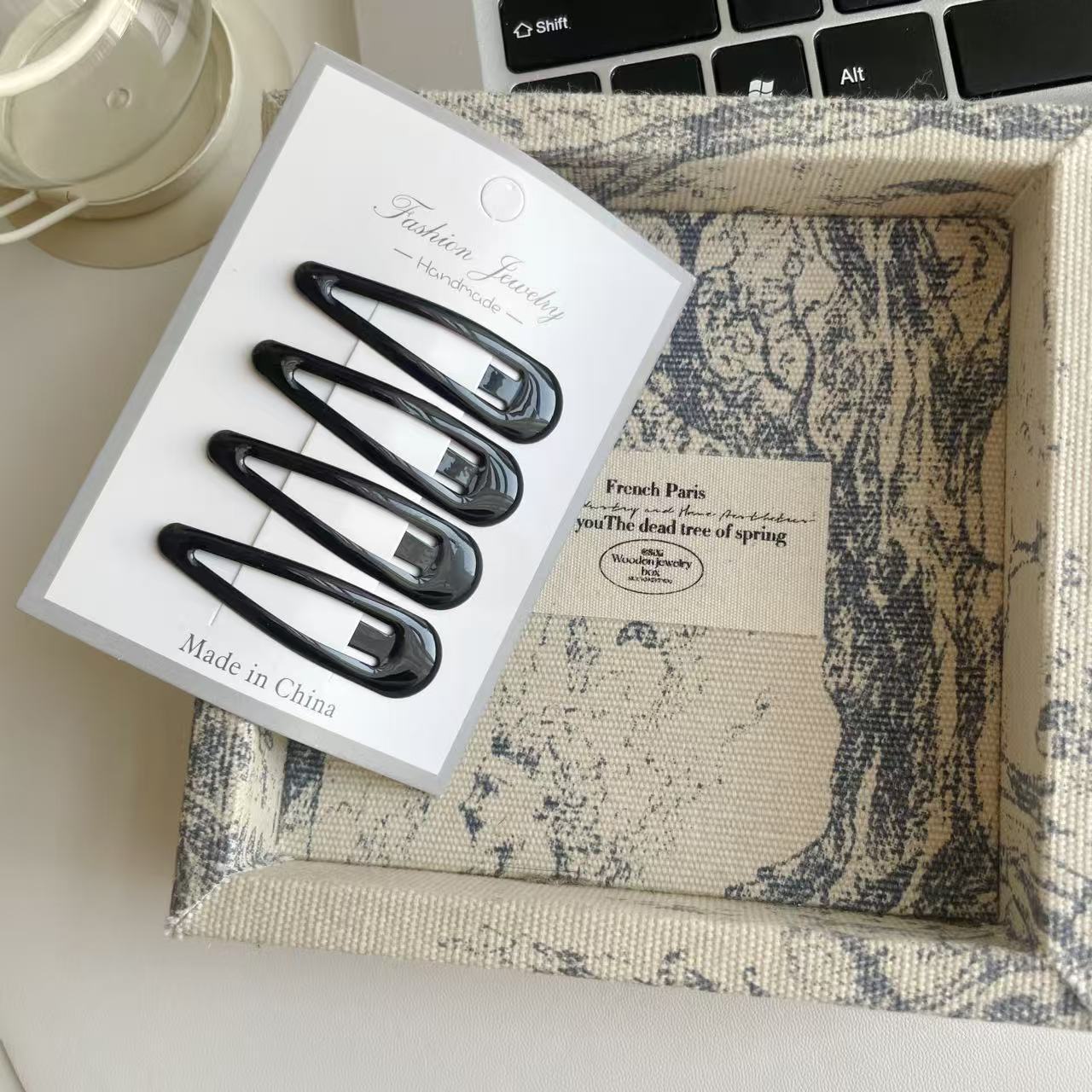 기본 오일 드롭 블랙 bb 클립 간단한 올 매치 헤어 액세서리 물 드롭 금속 헤어핀 소녀의 사이드 뱅 깨진 헤어 카드