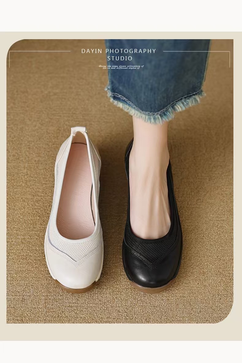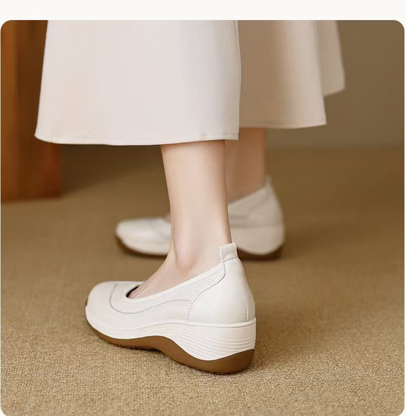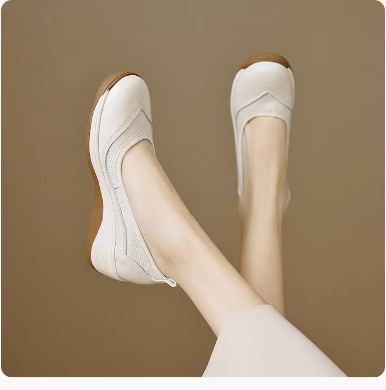 레트로 라이트 럭셔리 대외 무역 게으른 운동화 여성 정품 가죽 라운드 발가락 슬립 온 신발 2025 가을 캐주얼 하이힐 가죽 신발 얇은스토어 가기