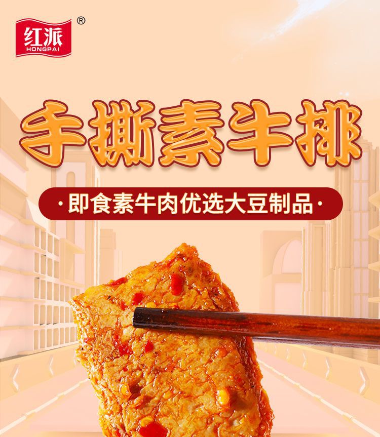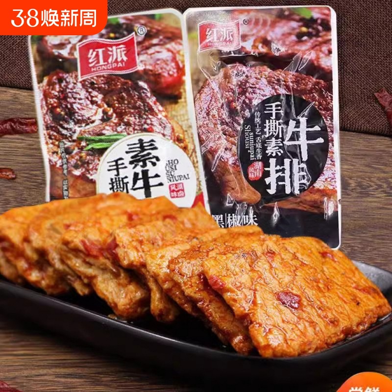 붉은 파이 손으로 찢어진 채식 스테이크 채식 고기 큰 스테이크 간식 검은 후추 스낵 식품 말린 콩 두부 매운 스트립 독립 포장스토어 가기