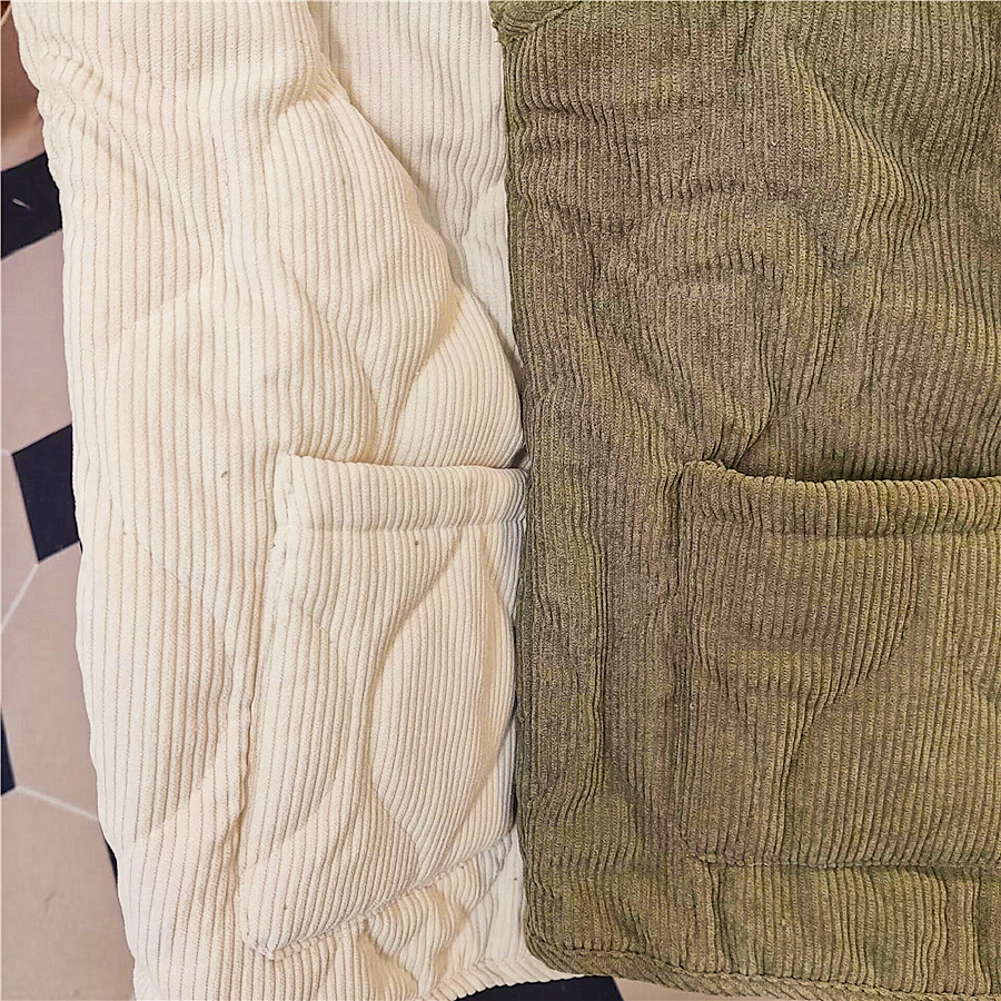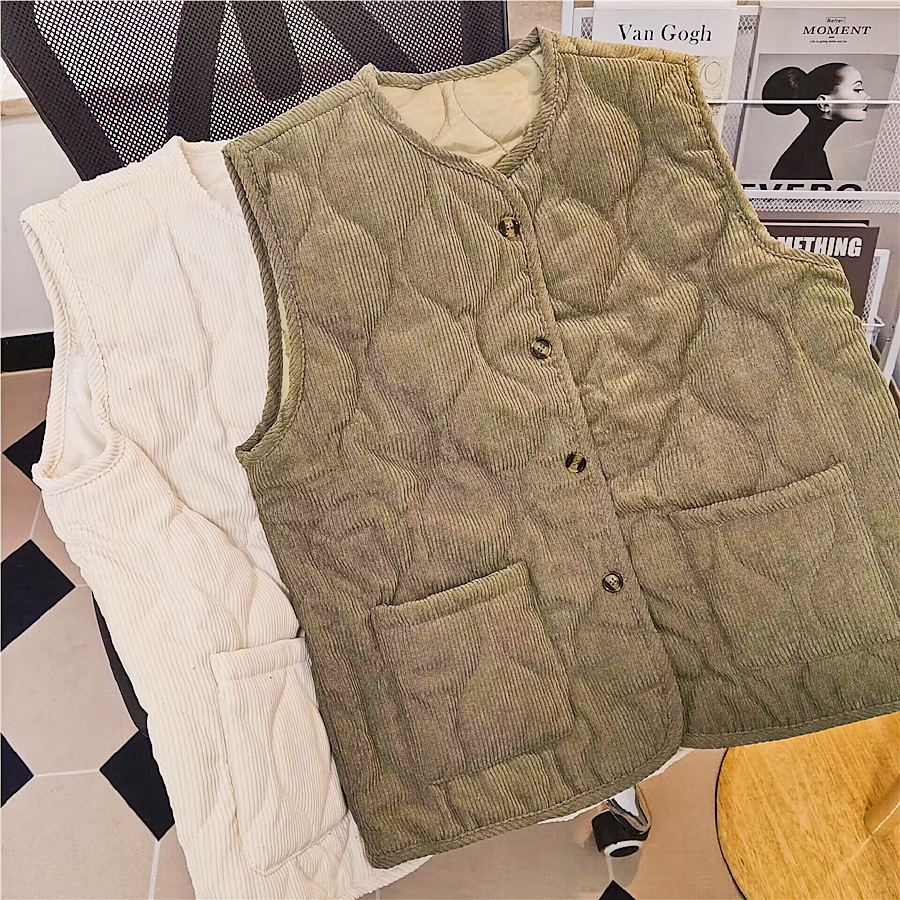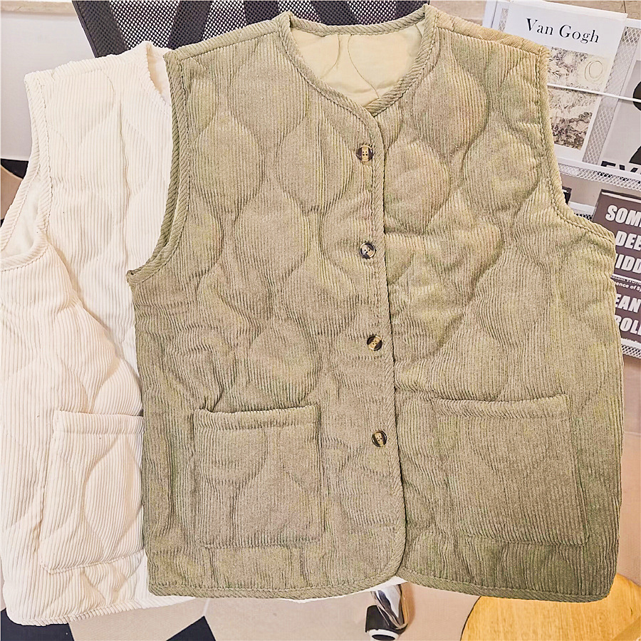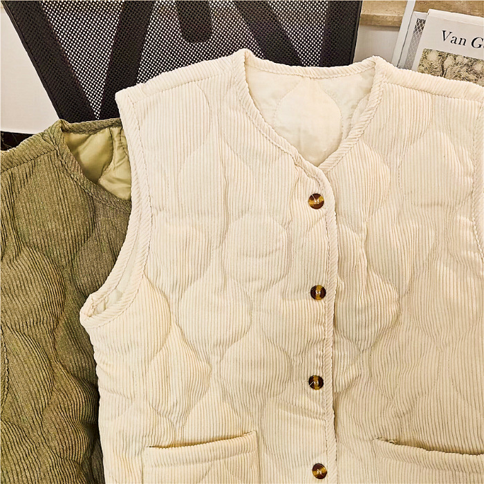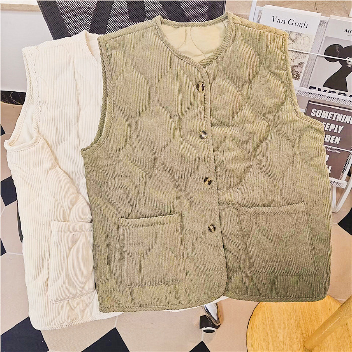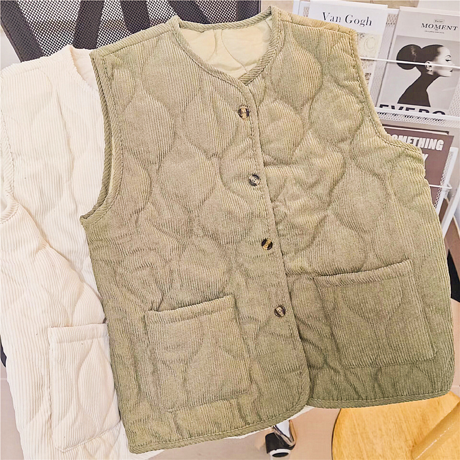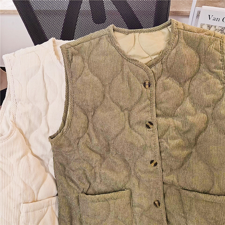 리얼 샷 재고 면 패딩 의류 작은 조끼 재킷 여성 가을 및 겨울 한국 스타일 외부 조끼 착용 조끼 코듀로이 두꺼운 코튼 패딩 재킷 민소매