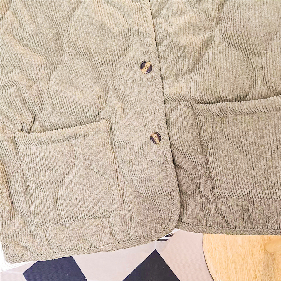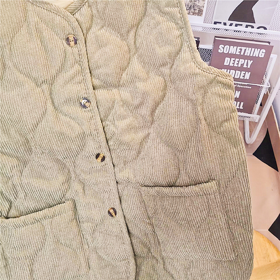 리얼 샷 재고 면 패딩 의류 작은 조끼 재킷 여성 가을 및 겨울 한국 스타일 외부 조끼 착용 조끼 코듀로이 두꺼운 코튼 패딩 재킷 민소매스토어 가기