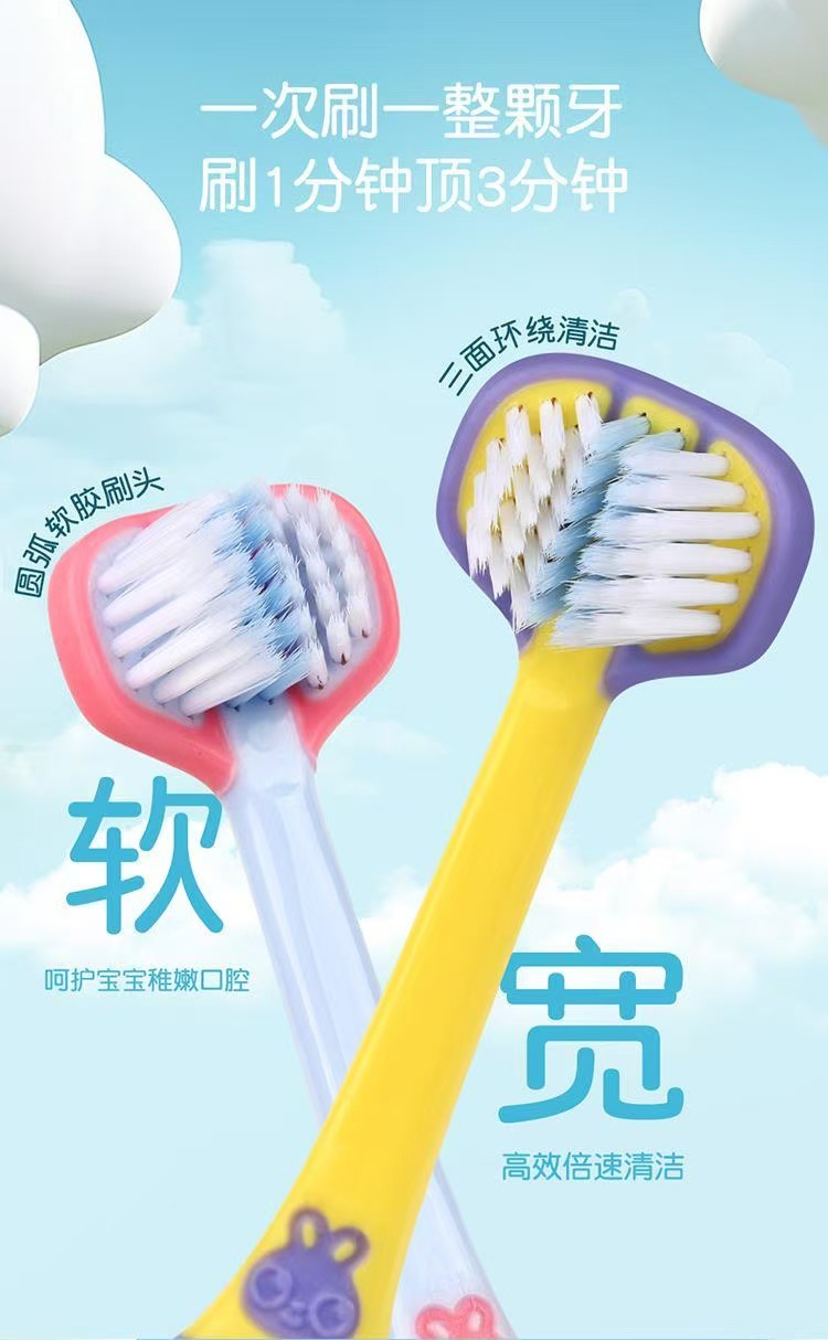 어린이 방진 칫솔 부드러운 머리 부드러운 작은 머리 3 차원 부드러운 3 면 청소 치약 보호 3-12 세