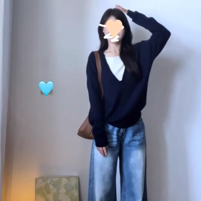가짜 투피스 스웨터 톱 여성 2025 년 새 폭발 초가을 한국복 칼리지 스타일 스웨터