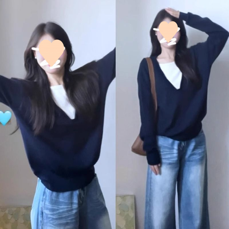 가짜 투피스 스웨터 톱 여성 2025 년 새 폭발 초가을 한국복 칼리지 스타일 스웨터스토어 가기