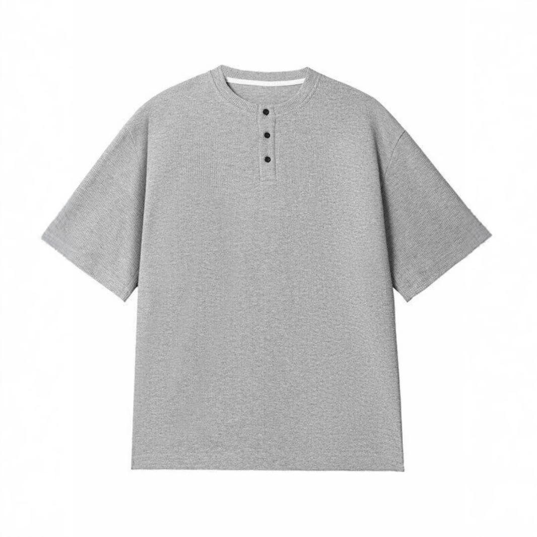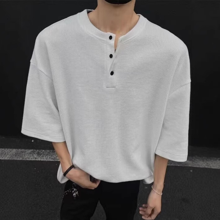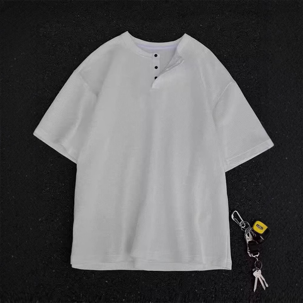 와플리 헨리 칼라 반팔 티셔츠 남자 2025 년 여름 새로운 하이 엔드 센스 헤비 웨이트 루즈 캐주얼 반소매 티셔츠