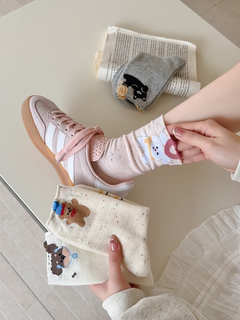 어린이 재미있는 포인트 원사 새로운 귀여운 고양이 개 만화 면화 양말 중간 튜브 양말 여성용 한국 Ins Stacking 양말스토어 가기