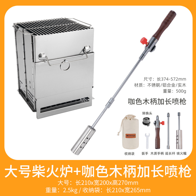 • 대형 사각 일체형 장작 난로 + 갈색 나무 손잡이 확장 스프레이 건(베이지색 보관 가방 포함)