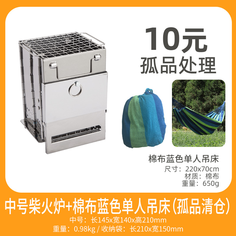 • 중형 사각 일체형 장작 난로 + 면 블루 싱글 해먹(고아 제품)